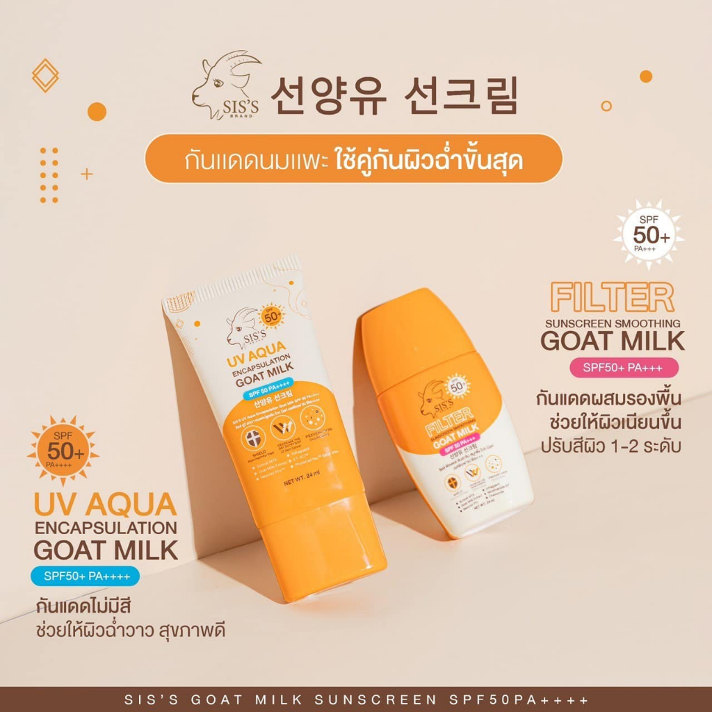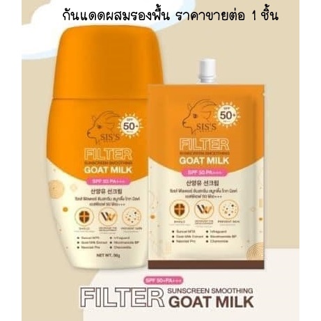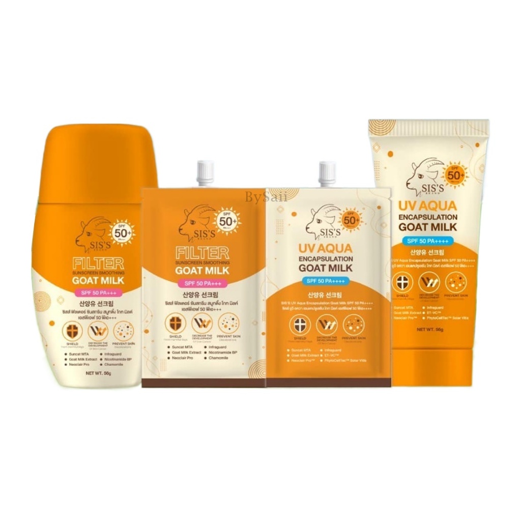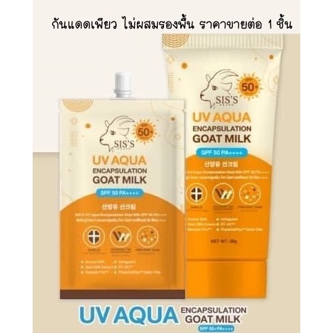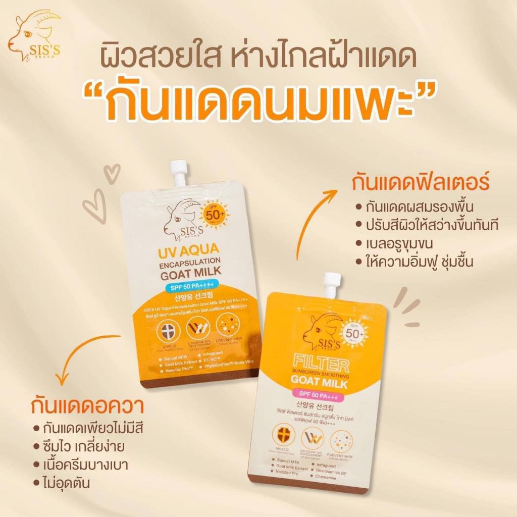 (1ชิ้น) กันแดดนมแพะ ซิสส์ แบบซอง มีให้เลือก 2 สูตร SIS'S SPF50 PA+++