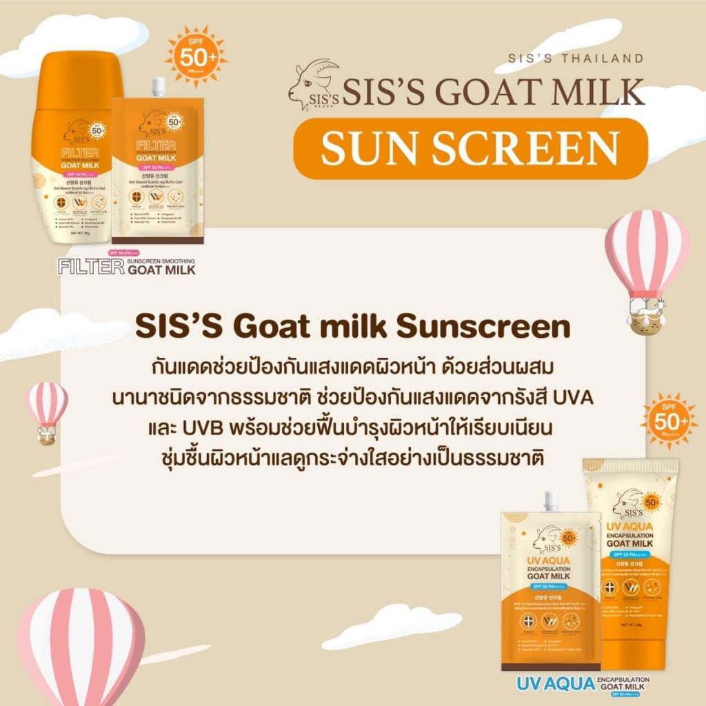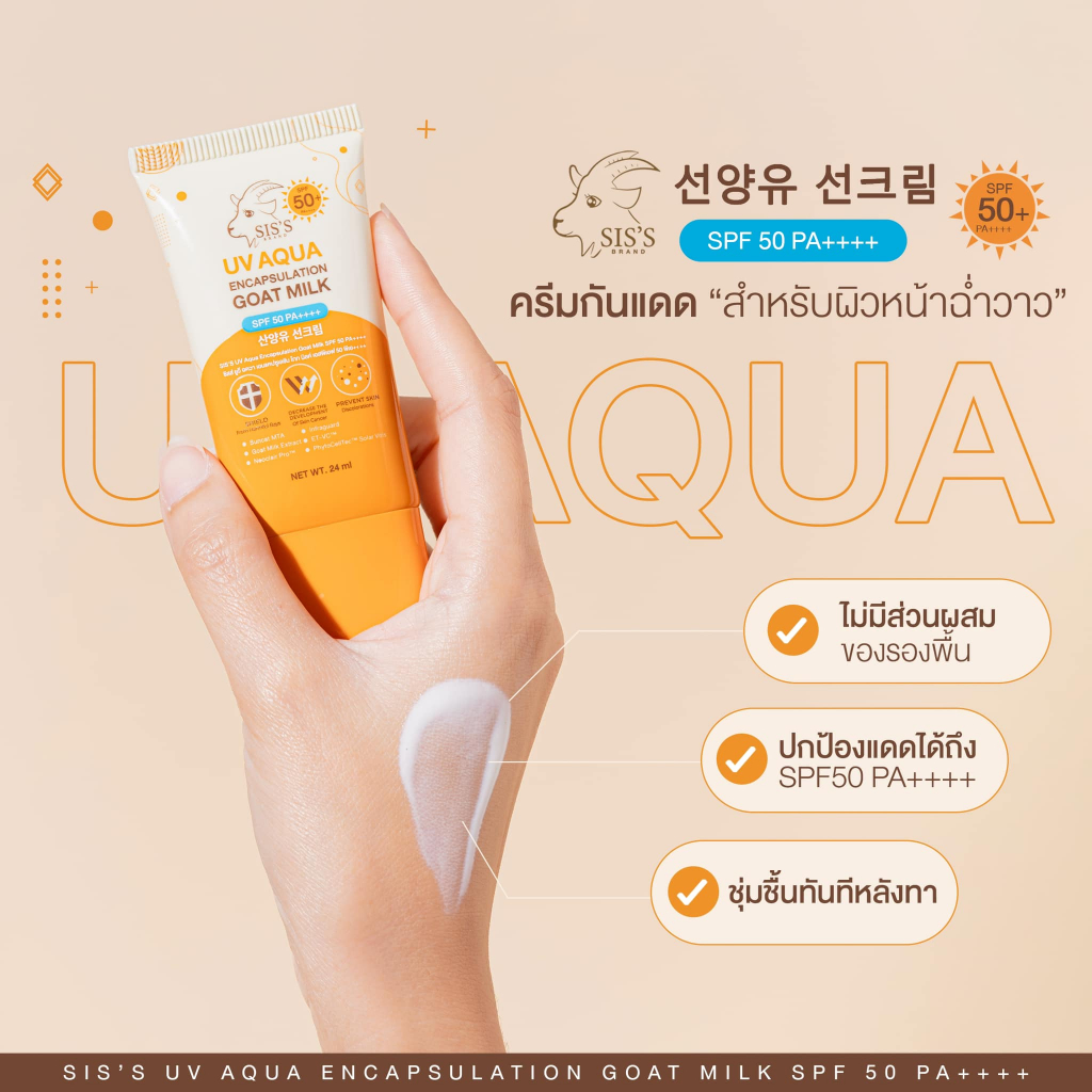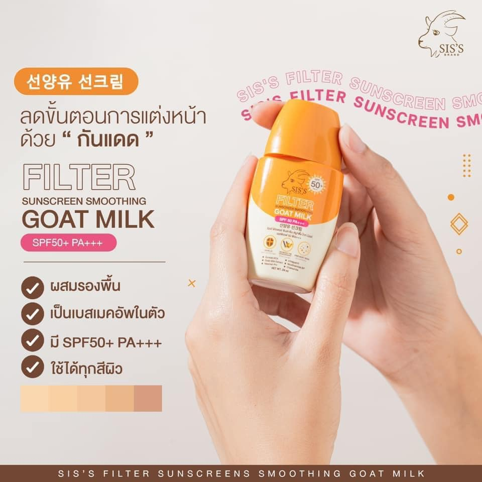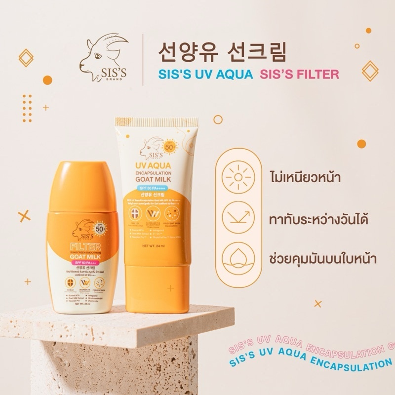 (1ชิ้น) กันแดดนมแพะ ซิสส์ แบบซอง มีให้เลือก 2 สูตร SIS'S SPF50 PA+++