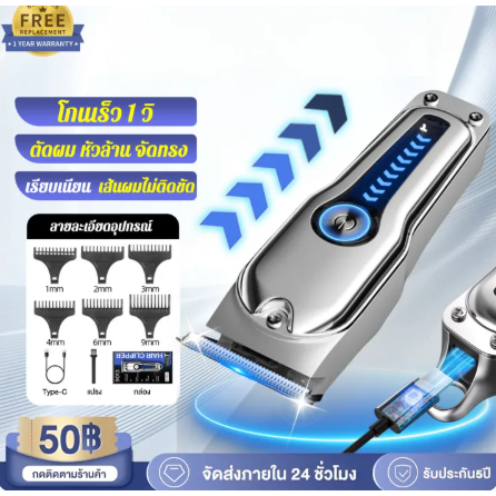 ปัตตาเลี่ยนไร้สาย แถมชุดตัดผม 12 ชิ้น ตัดผม ปัตตาเลี่ยน ที่ตัดผมผู้ชาย ที่ตัดผมไร้สาย Hair Clipper