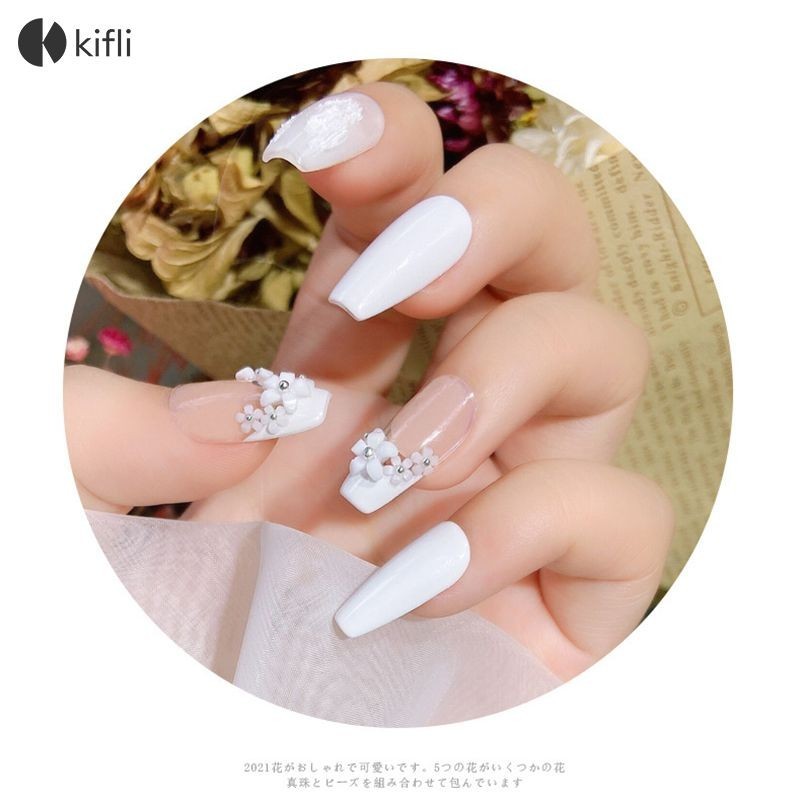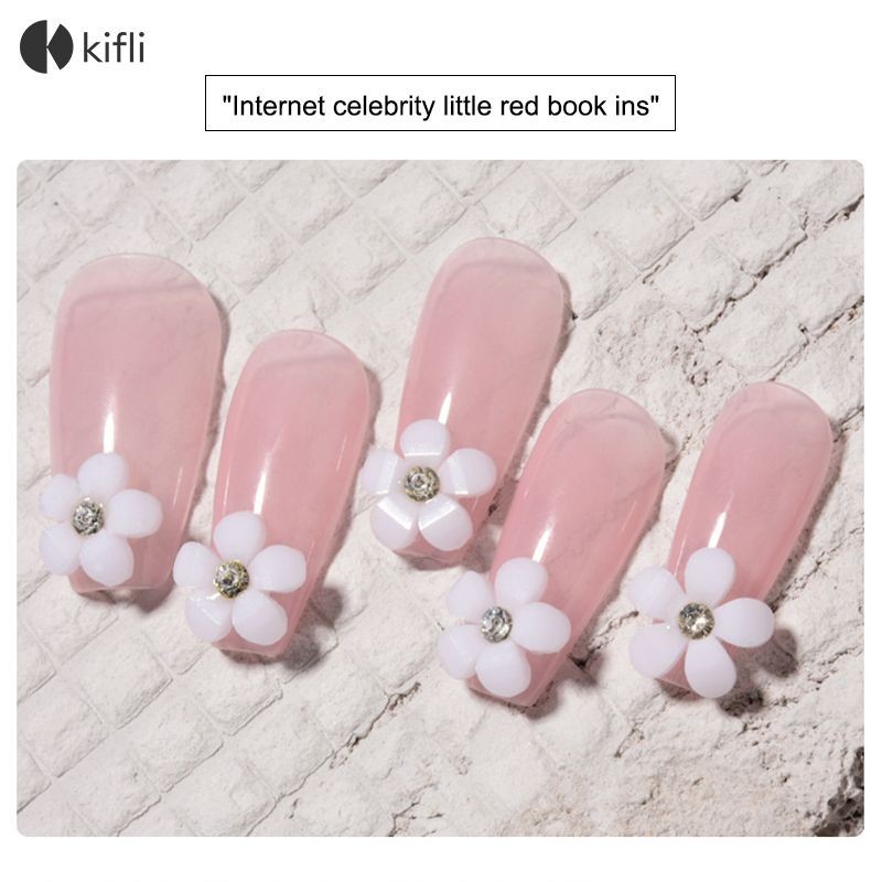 kifli.th100PC ห้ากลีบดอกไม้เล็บเครื่องประดับมินิดอกไม้สีขาวเครื่องประดับเล็บ-ki