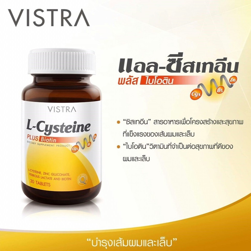 🔥lot ใหม่ พร้อมส่ง🔥VISTRA L-CYSTEINE (30 TABLETS) วิสทร้า แอลซีสเทอีน ดูแลสุขภาพของเส้นผม