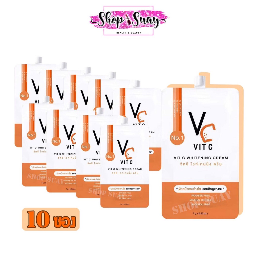 ยกกล่อง ครีมวิตซี น้องฉัตร VC Vit C Whitening Cream 7g.