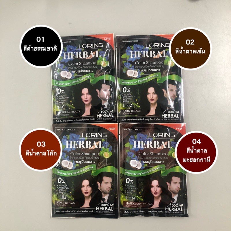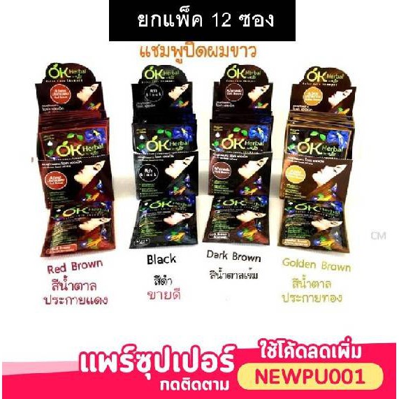 ยกกล่อง / 12 ซอง / ครบสี OK Herbal โอเค เฮอเบิล / Loring herbal แชมพูปิดผมขาว แชมพูสระ แชมพู เปลี่ยนสีผม ครีมซอง