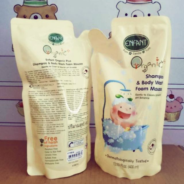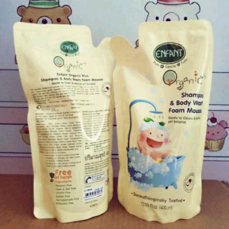 ENFANT อองฟองต์ ออแกนิค พลัส แชมพู แอนด์ บอดี้ วอช โฟม มูส ชนิดถุงเติมและขวด ขนาด400มล