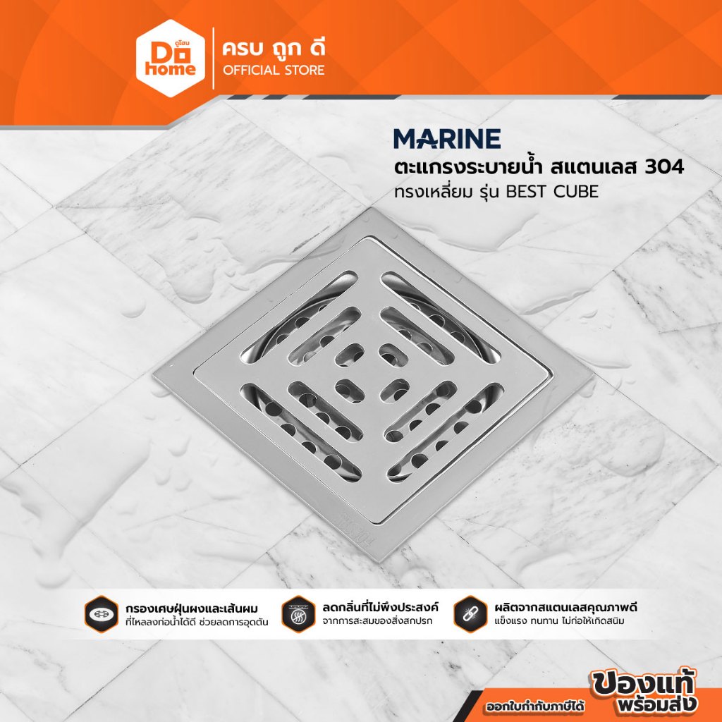 MARINE ตะแกรงระบายน้ำ สแตนเลส 304 ทรงเหลี่ยม รุ่น BEST CUBE |EA|