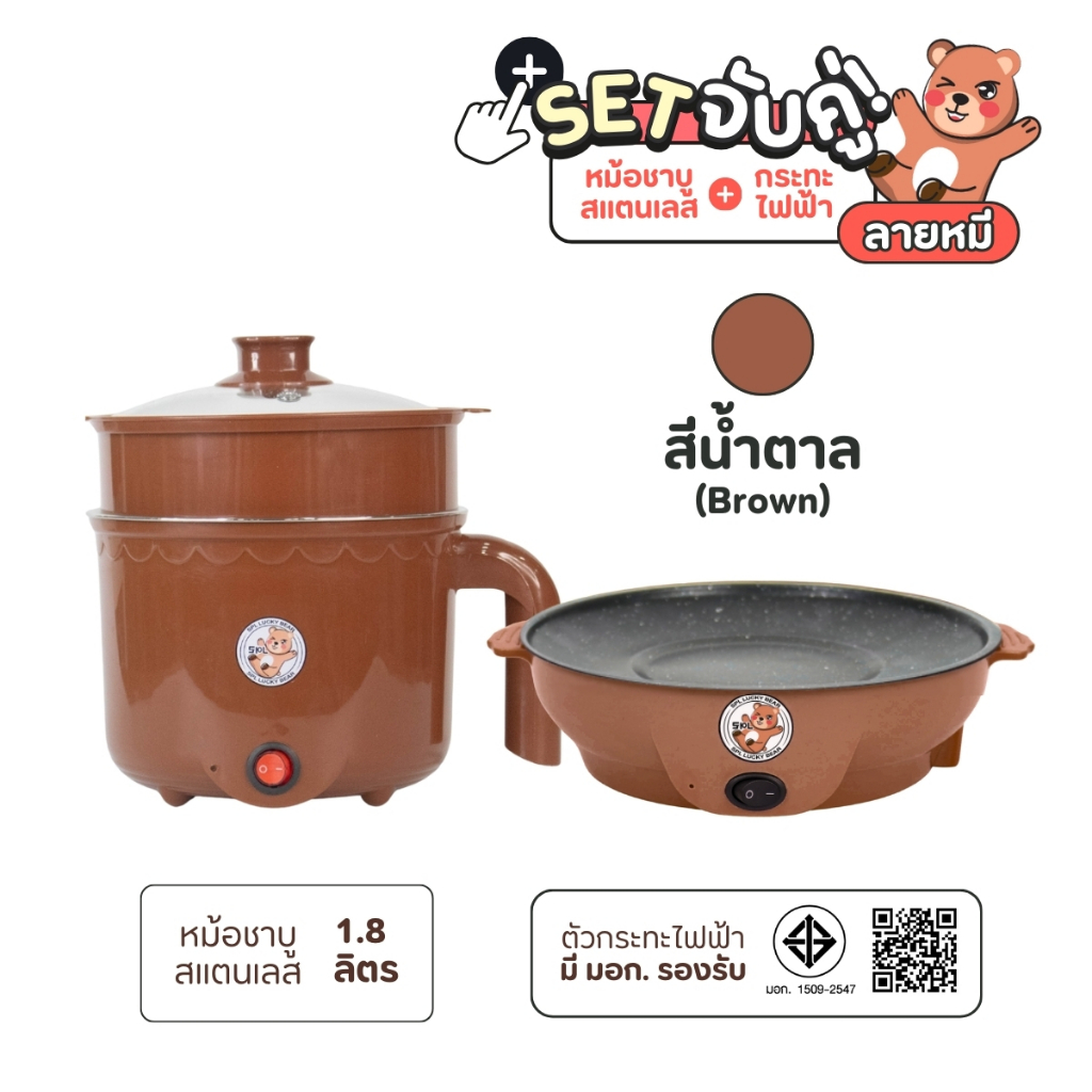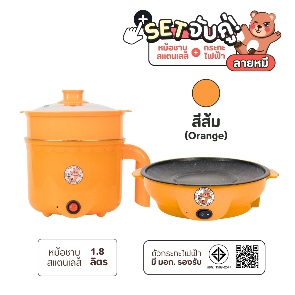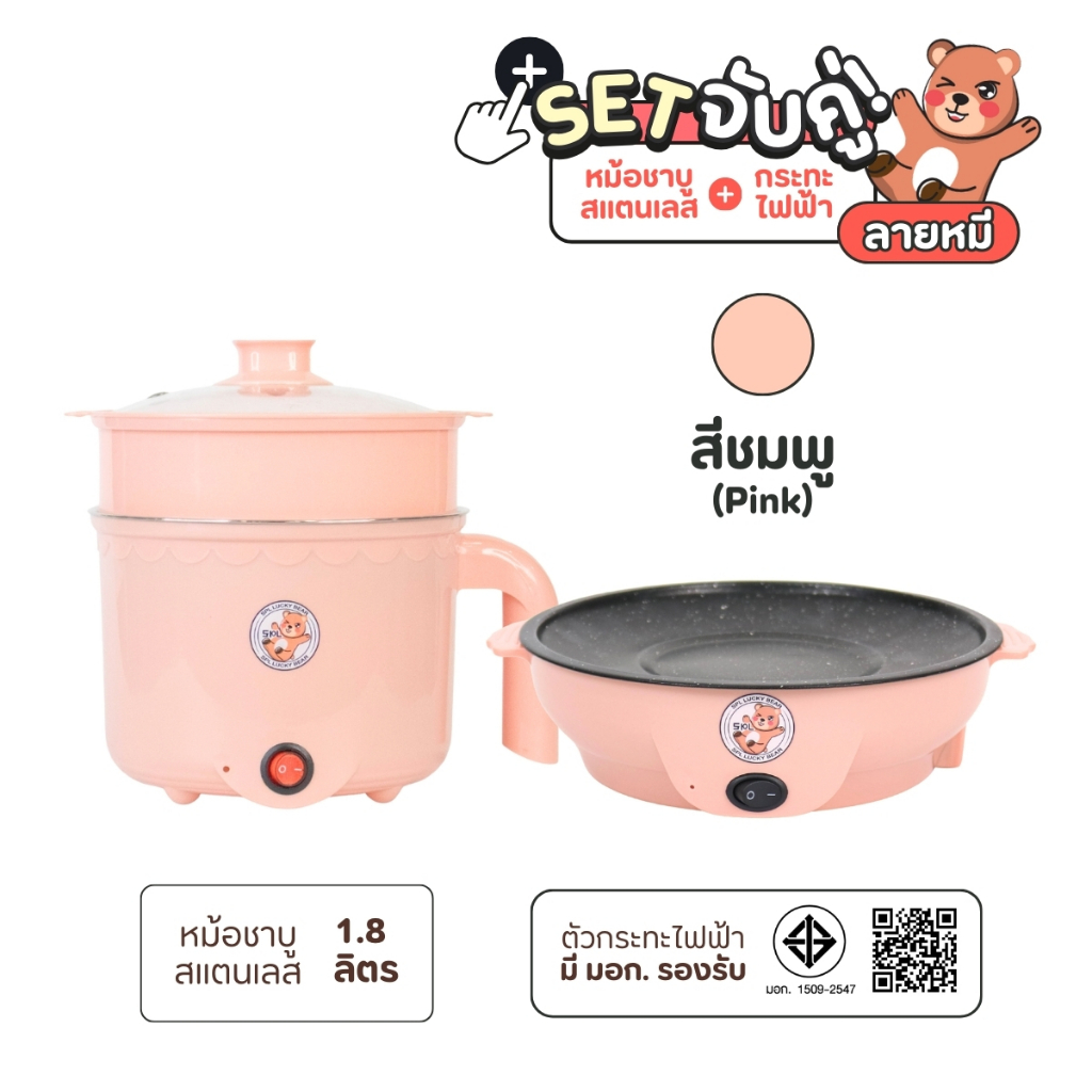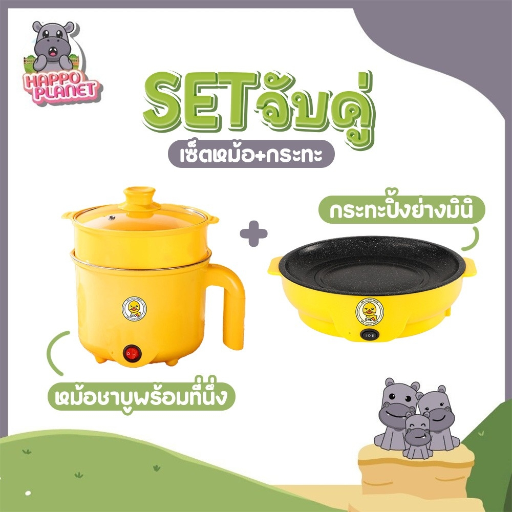 เซตคู่ หม้อ+กระทะ ลายเป็ด ได้2ชิ้น หม้ออเนกประสงค์ กระทะมินิ เตาปิ้งย่างไฟฟ้า หม้อสุกี้ กระทะย่างเนย หม้อมาม่า กระทะมินิ