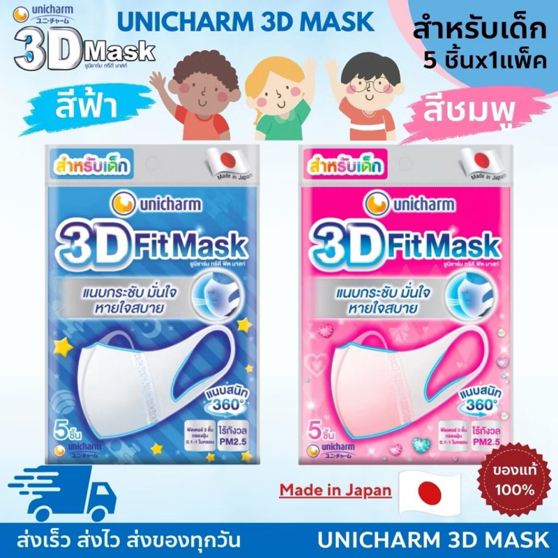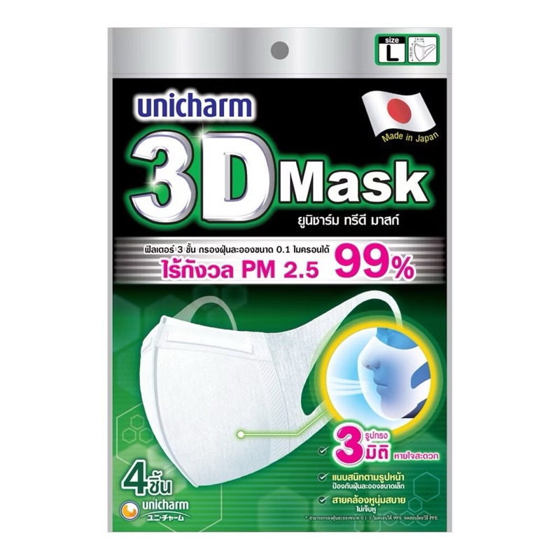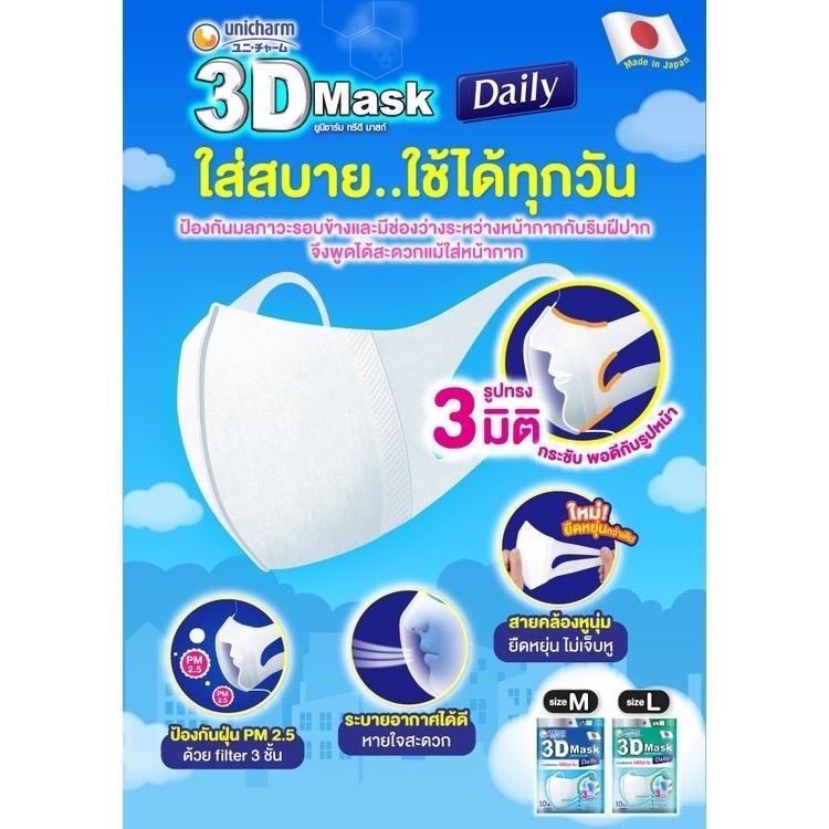หน้ากากอนามัย แมส 3D ยูนิชาร์ม 10 ชิ้น เบอร์M เบอร์L แมสผู้ใหญ่ แมสเด็ก Unicharm ยูนิชาร์ม