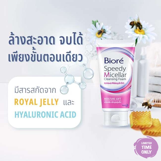 Biore Speedy Micellar Cleansing Foam บีโอเร สปีดดี้ ไมเซลล่า คลีนซิ่ง โฟม (ขนาด 90 กรัม)