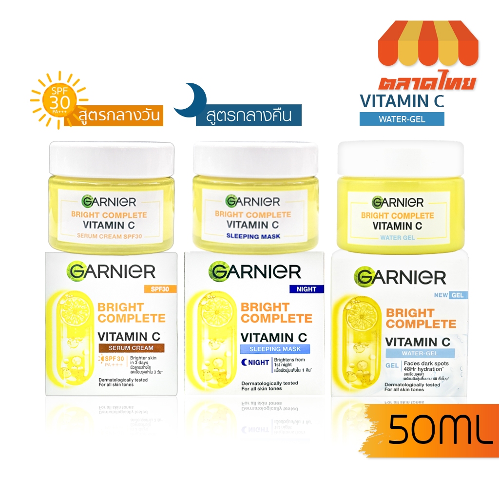 การ์นิเย่ ไบรท์ คอมพลีท วิตามินซี เนื้อเจล บางเบา 50 มล. Garnier Bright Complete Vitamin C Day / Night 50 ml.