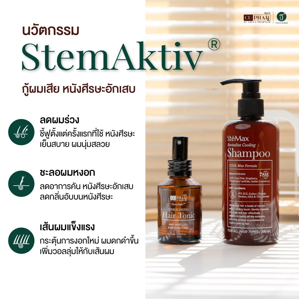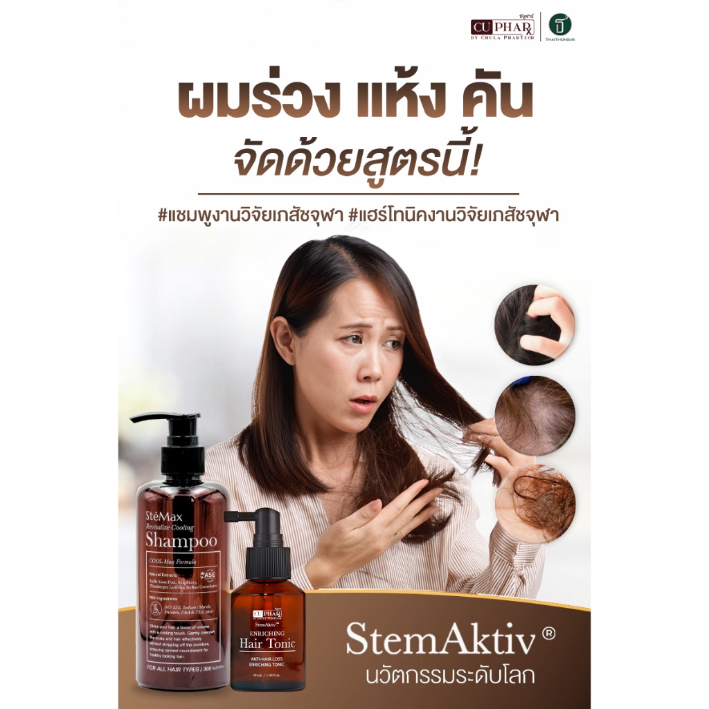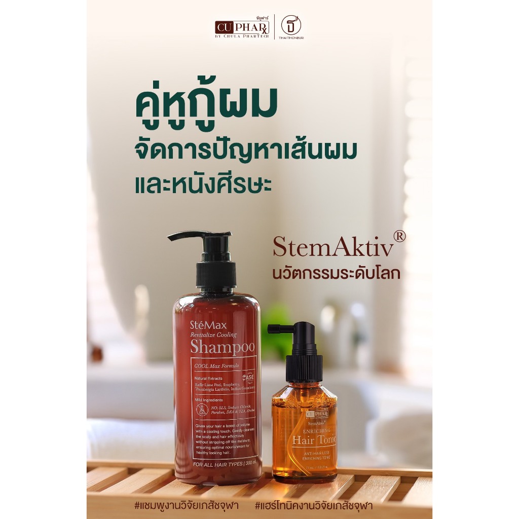 CUphar Hair Tonic เซรั่มผมเภสัชจุฬา 75มล./CUphar SteMax แชมพูเภสัชจุฬา แชมพูลดผมร่วง รังแค 300 มล.