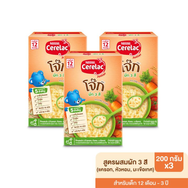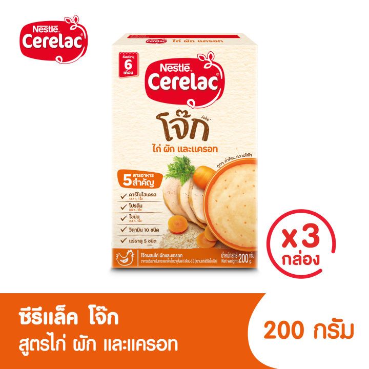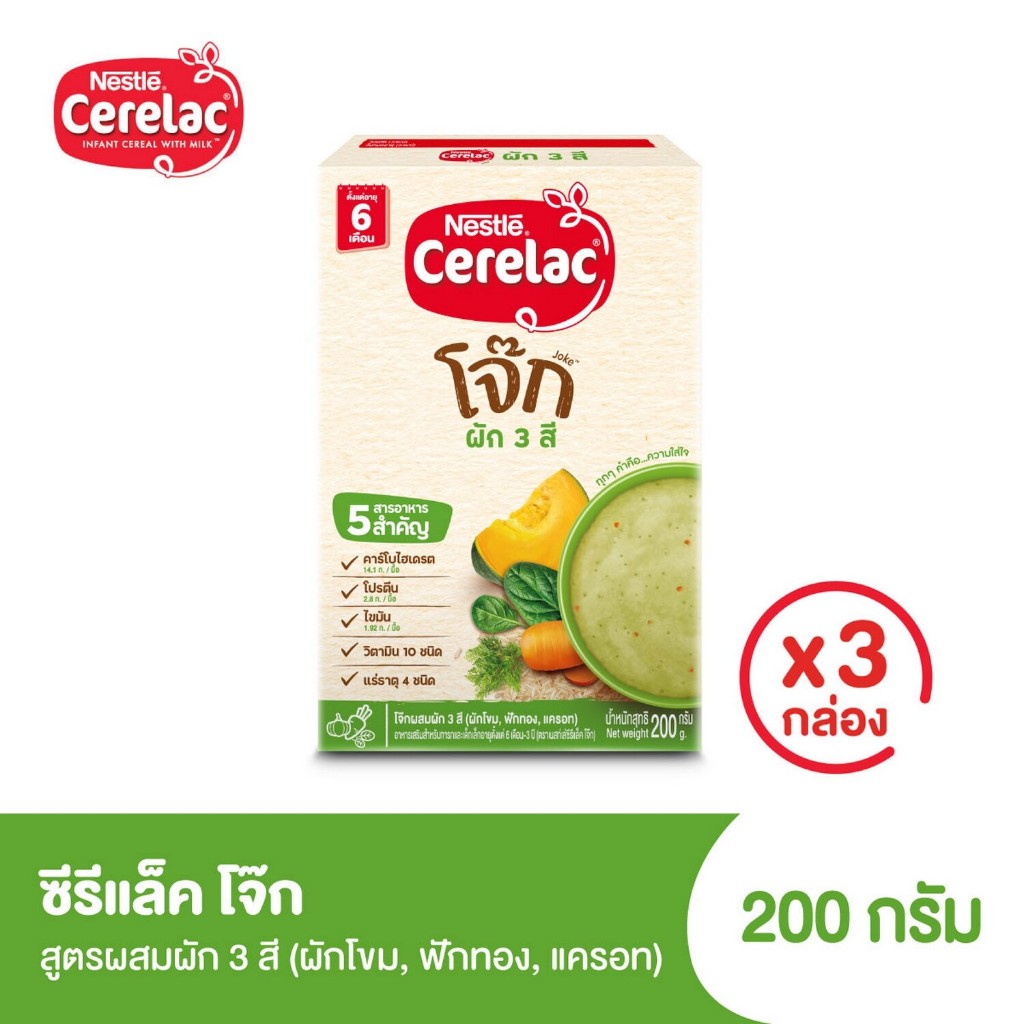 Cerelac ซีรีแล็ค อาหารเสริมสำหรับเด็ก ตั้งแต่ 6 เดือน ขึ้นไป ขนาด 200/250 กรัม แพ็ค 3 กล่อง