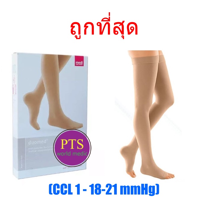 (CCL 1) ถุงน่องเส้นเลือดขอด Duomed ซิลิโคนต้นขา-เปิดเท้า-สีเนื้อ Class1 (18-21 mmHg) (V16100)