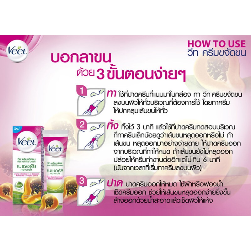 Veet วีท ครีมขจัดขน ทุกสูตร บอกลาขน ด้วย 3 ขั้นตอนง่ายๆ เหมาะสำหรับผิวธรรมดา ผิวบอบบาง
