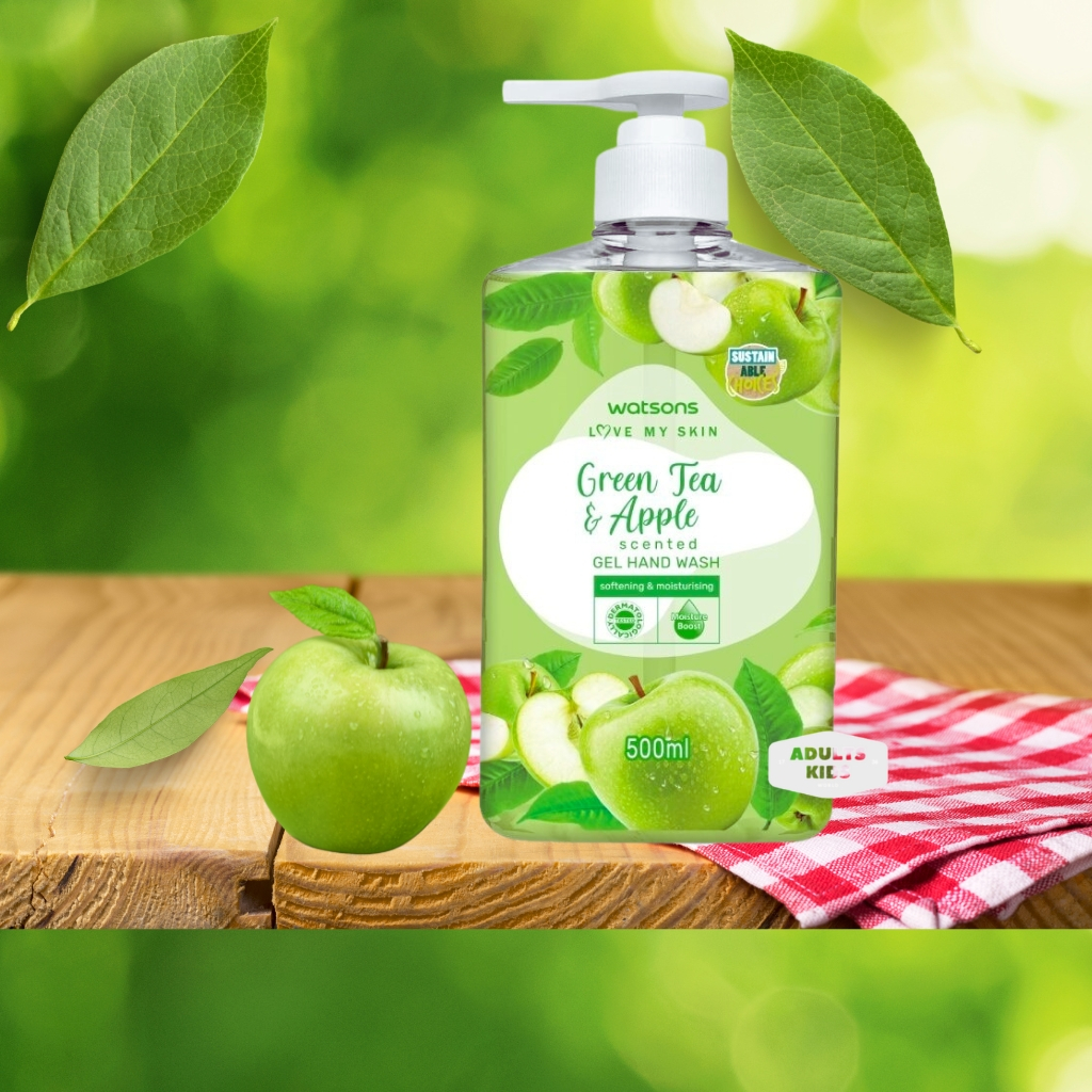 watsons วัตสัน สบู่เหลวล้างมือ เลิฟ มาย สกิน กรีนที แอนด์ แอปเปิ้ล เซ็นทิด เจล แฮนด์ วอช 500 มล.