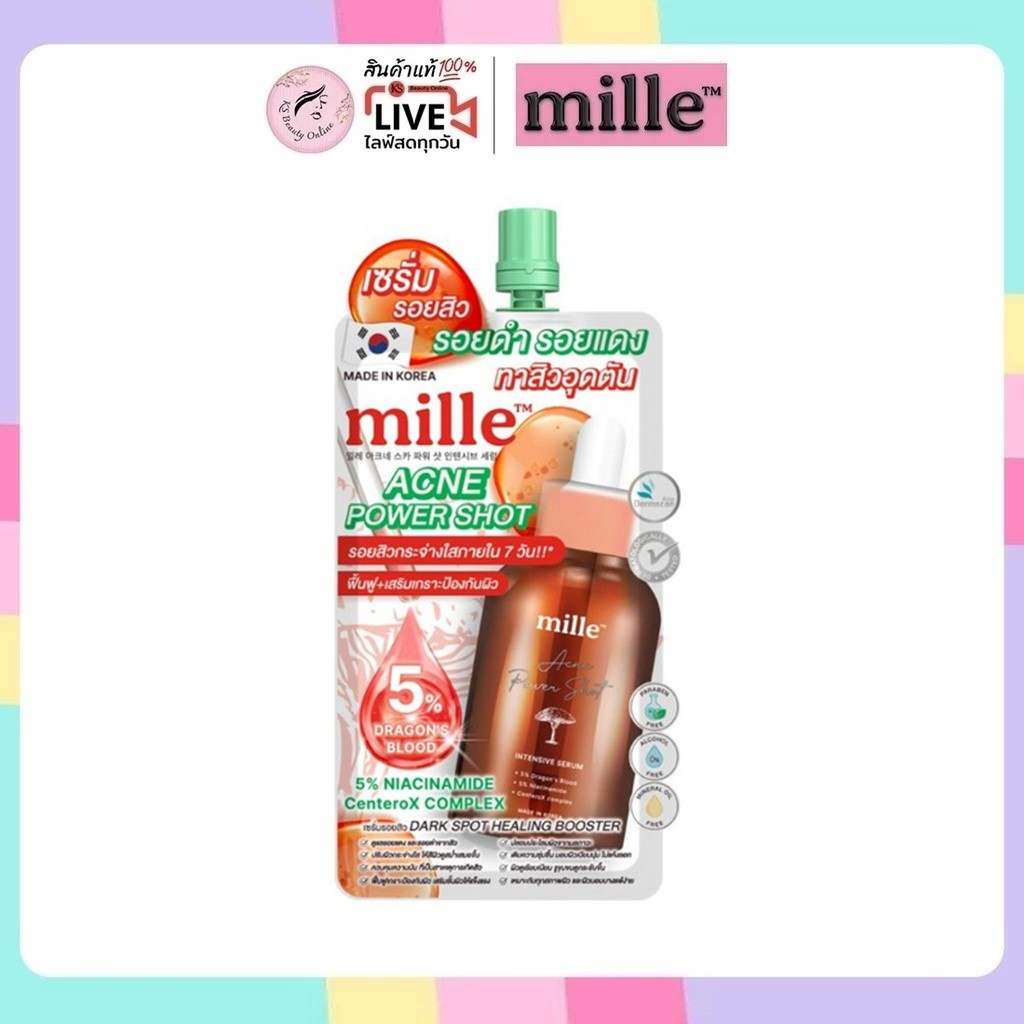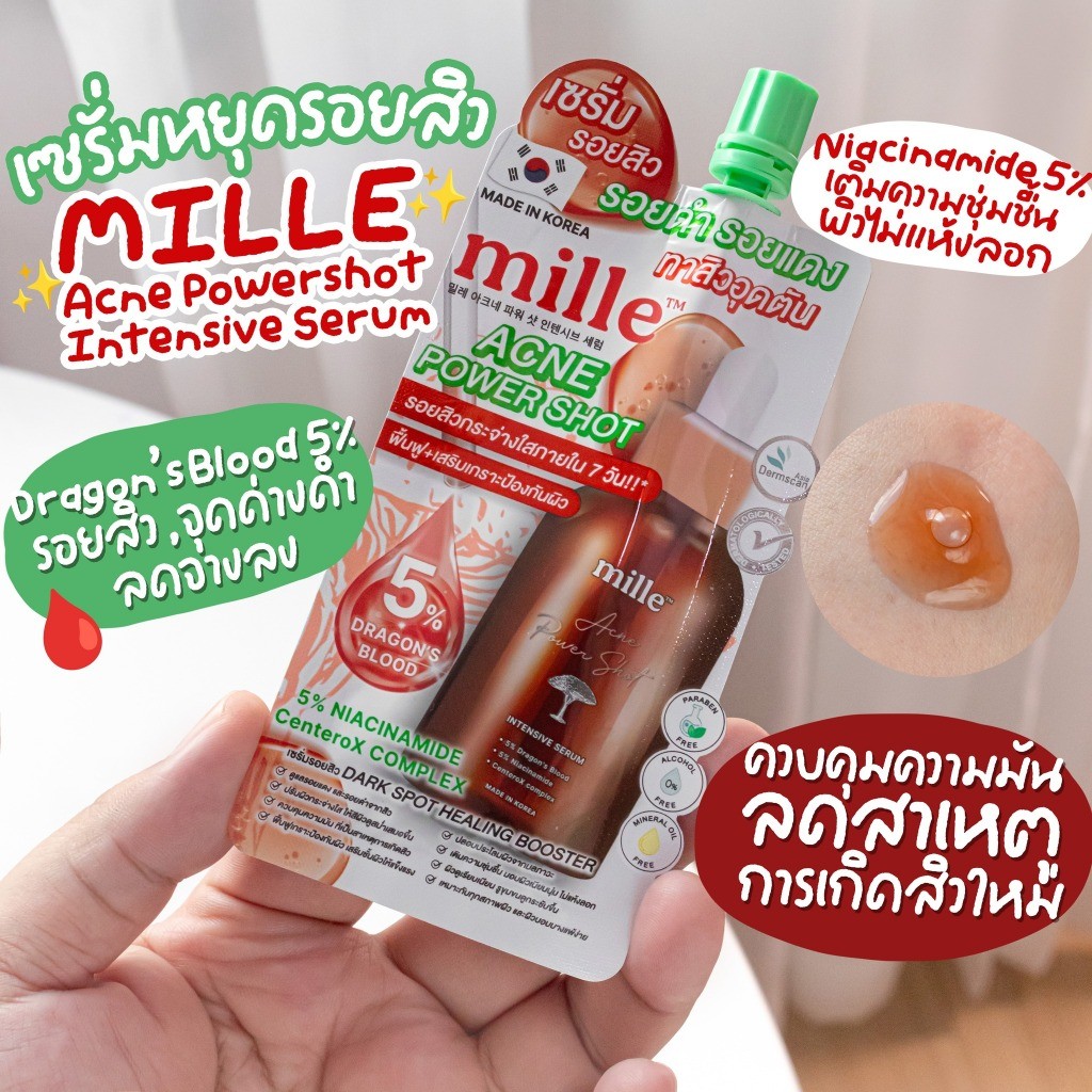 (1ซอง) มิลเล่ เซรั่มรอยสิว รอยดำ ทาสิวอุดตัน Mille Acne Power Shot Intensive Serum