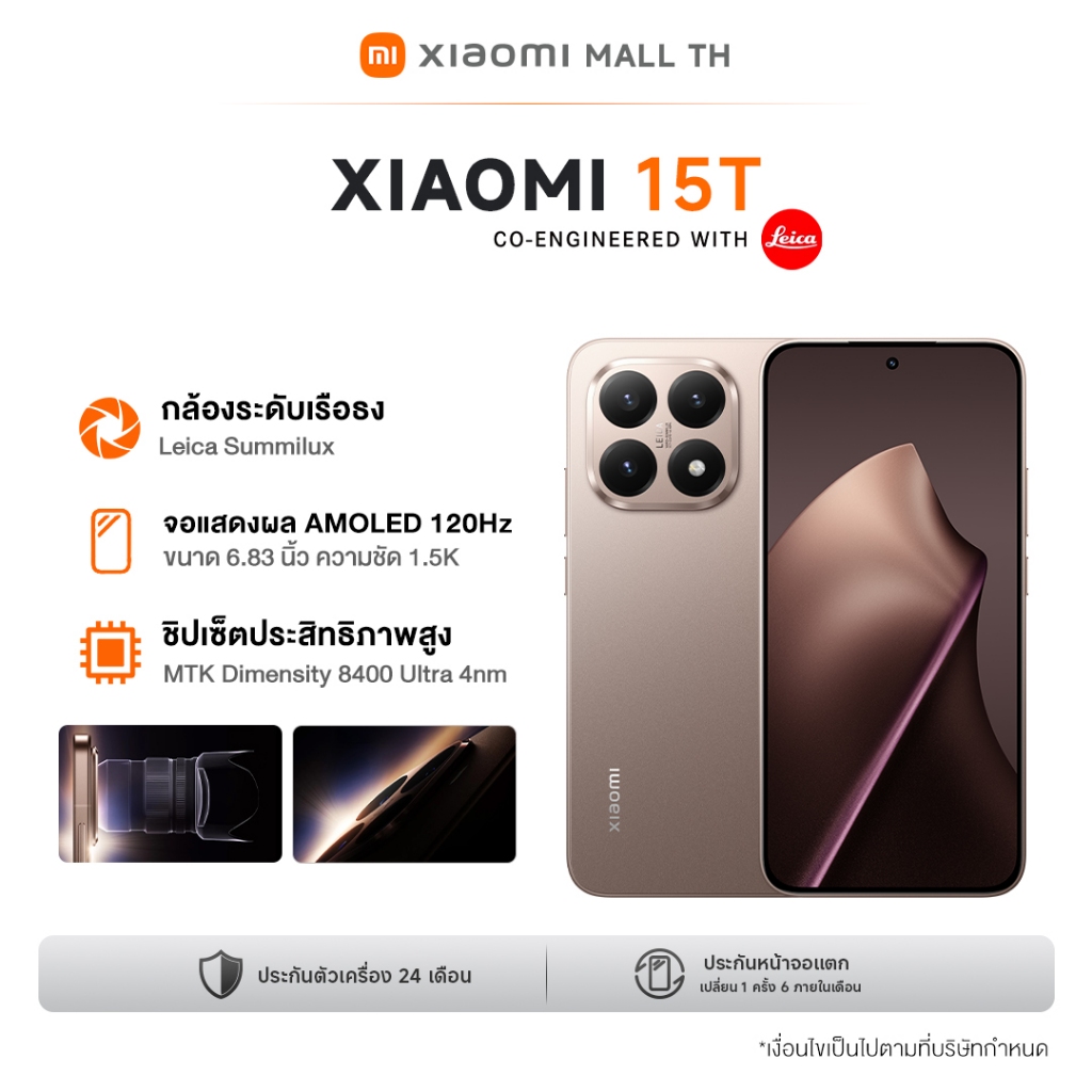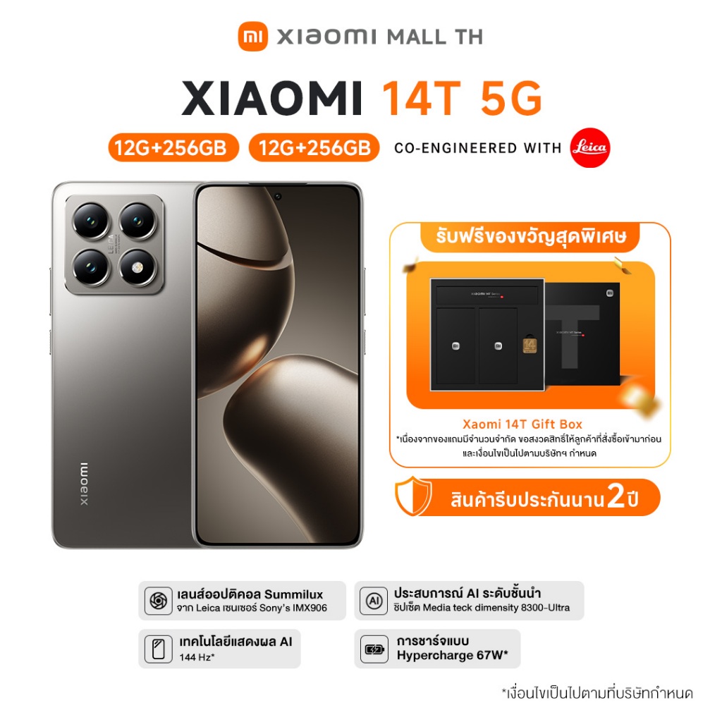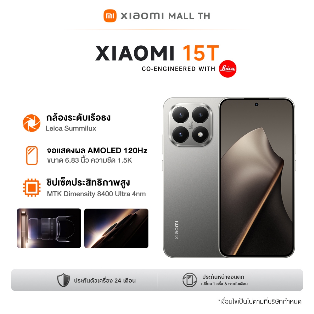 【Latest 】Xiaomi 14T 15T 5G 12+256/12+512 โทรศัพท์มือถือชิปเซ็ท Dimensity 8300-Ultra เลนส์ออปติคอล Summilux จาก Leica