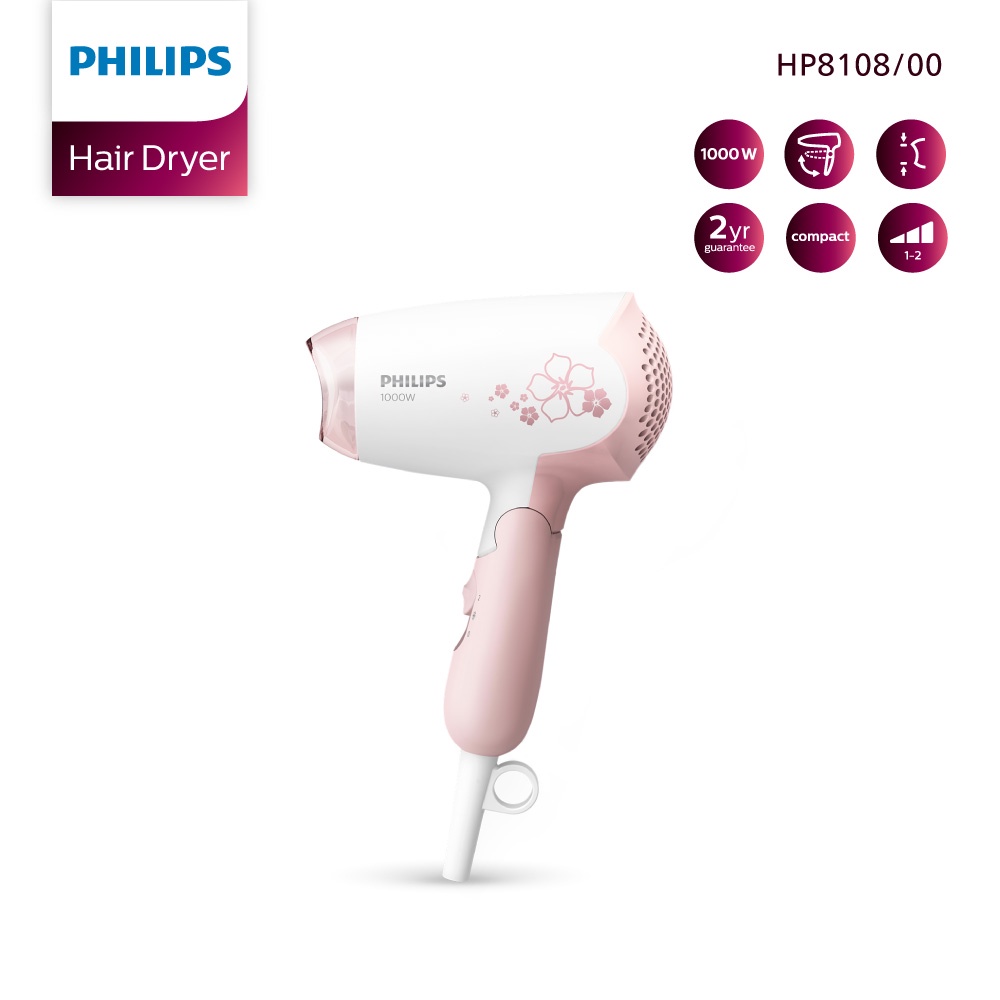 Philips ไดร์เป่าผม รุ่น HP8108/00 กำลังไฟ 1000 วัตต์ ปรับความเร็วได้ 2 ระดับ HP8108 พกพาง่าย รับประกันศูนย์ 2 ปี