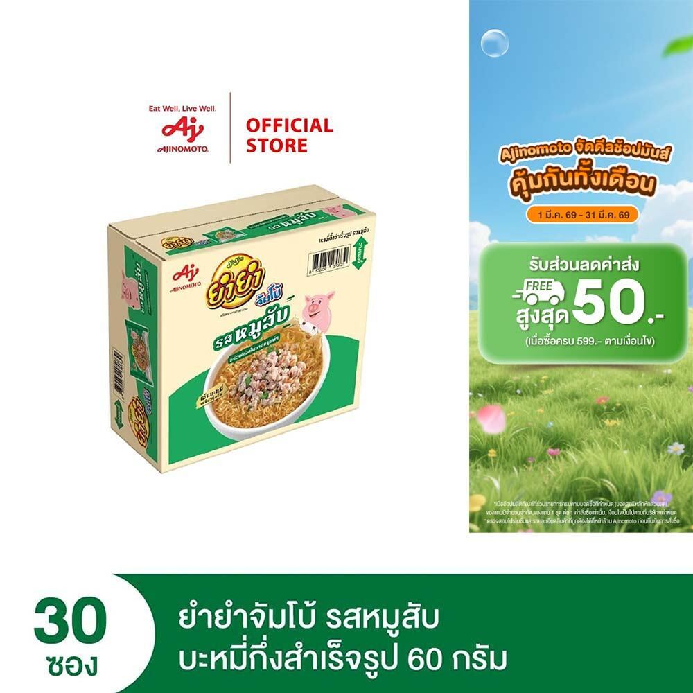 YumYum ยำยำจัมโบ้ บะหมี่กึ่งสำเร็จรูป รสหมูสับ 60 กรัม 30 ซอง