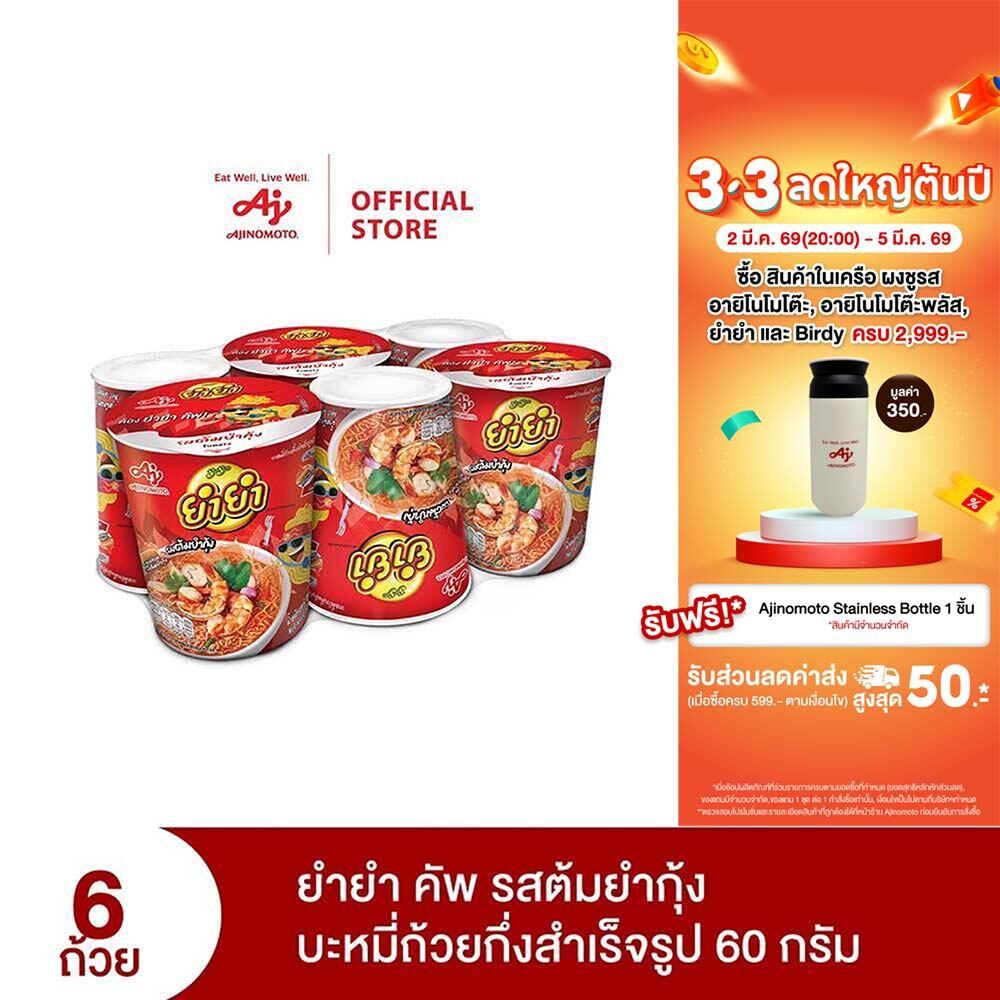 YumYum ยำยำคัพเต็มเต็ม รสต้มยำกุ้ง 60 กรัม แพ็ก 6 ถ้วย