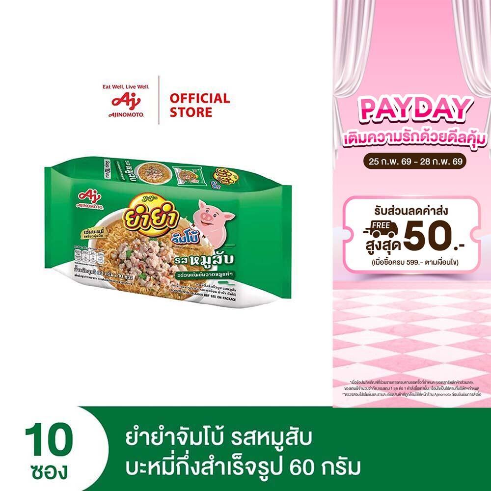 YumYum ยำยำจัมโบ้รสหมูสับ บะหมี่กึ่งสำเร็จรูป 60 กรัม แพ็ก x 10 ซอง