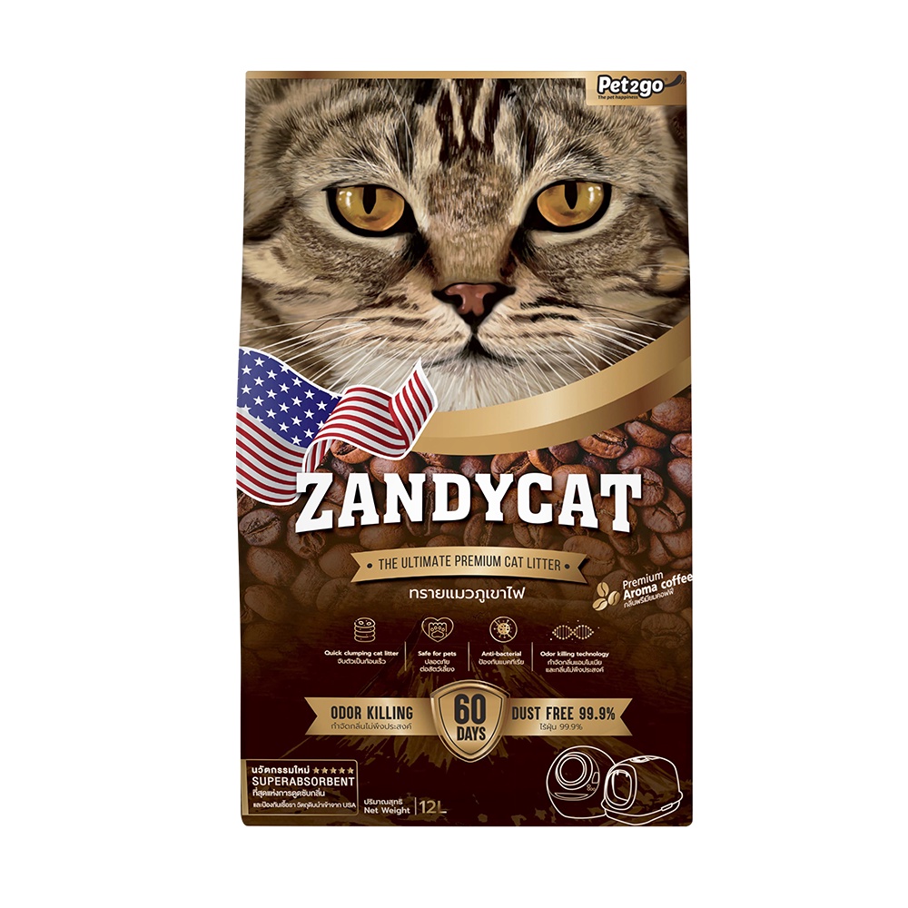 ZANDYCAT ทรายแมวภูเขาไฟ ทรายแมว อัลทิเมทพรีเมียม สูตรพรีเมี่ยมคอฟฟี่ 12ลิตร ใช้ได้กับห้องน้ำแมวอัตโนมัติและกระบะทรายแมว