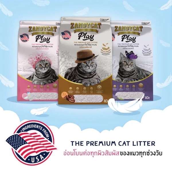 ZANDYCAT PLAY ทรายแมวภูเขาไฟ สูตรอ่อนโยน กลิ่น Coffee Latte 10 ลิตร จำกัดการซื่้อ2ถุง/ออเดอร์ ||ZPC01||