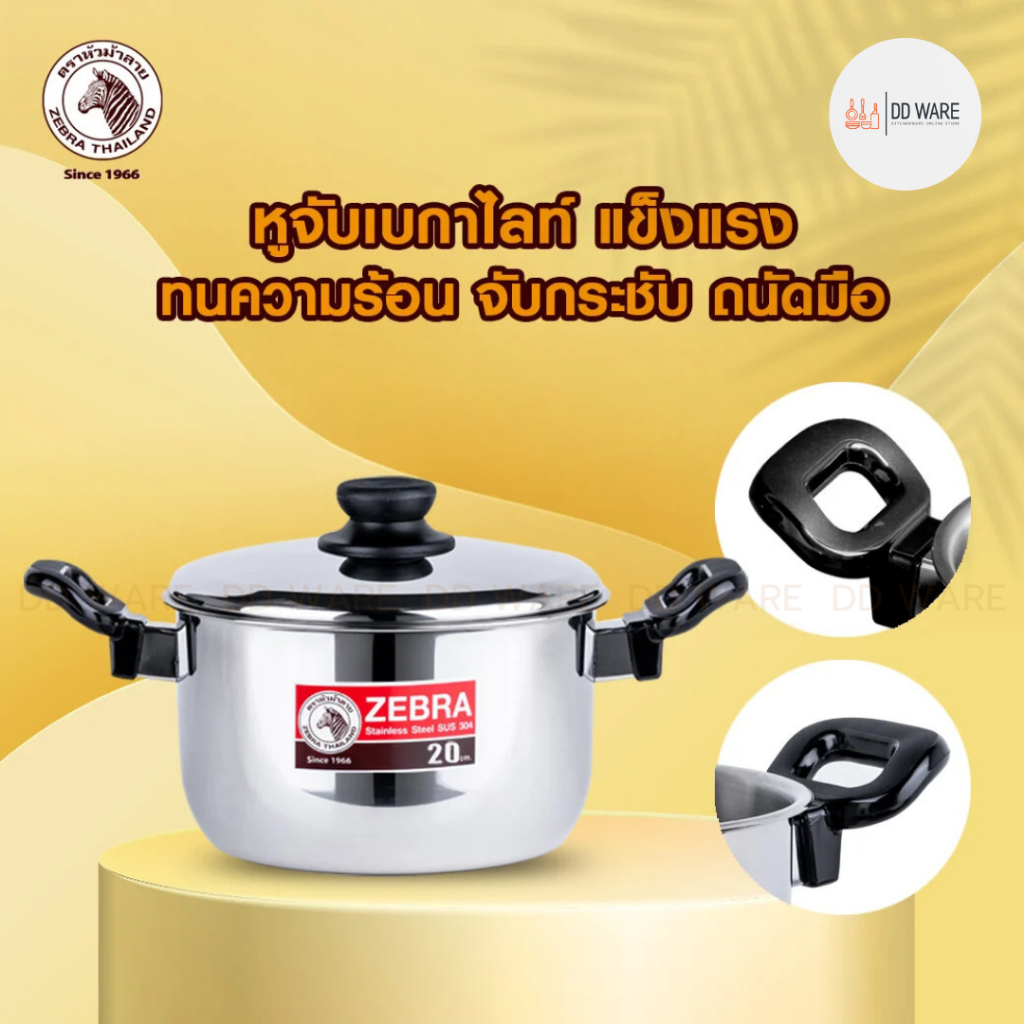 ZEBRA หม้อหุงต้ม Tiger มี 3 ขนาด (20,22,24 ซม.) หัวม้าลาย หม้อต้มสแตนเลส หม้อทำอาหาร หม้อสองหู หม้อหัวม้าลาย