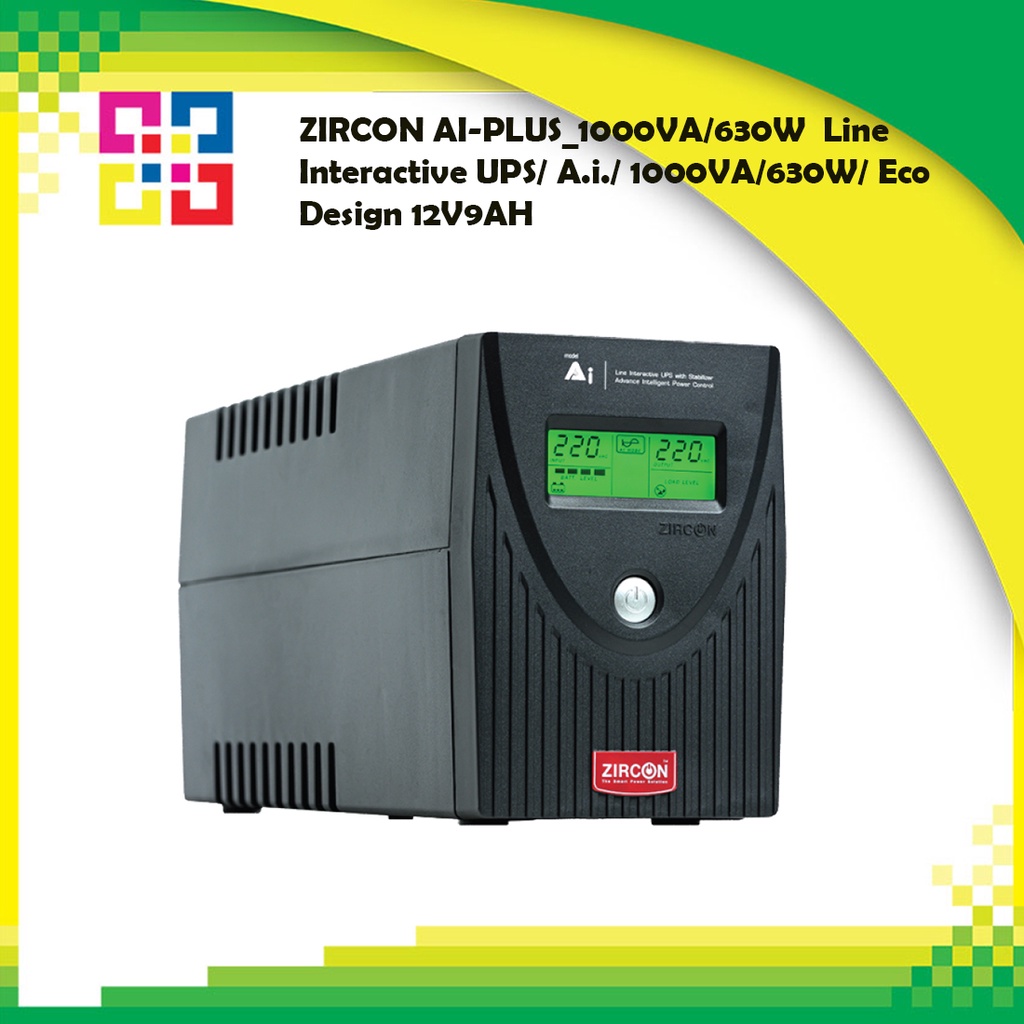 ZIRCON AI-PLUS_1000VA/630W Line Interactive UPS/ A.i./ 1000VA/630W/ Eco Design 12V9AH (Tower type)