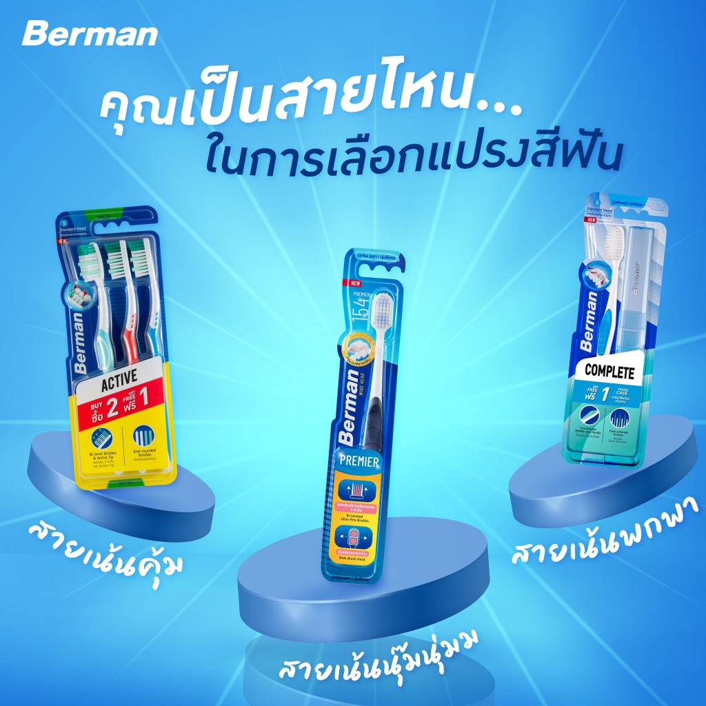 Berman แปรงสีฟัน Complete Extra Soft+Holder เบอร์แมนคอมพลีท เอ็กซ์ตร้าซอฟ+กล่องแปรง คละสี