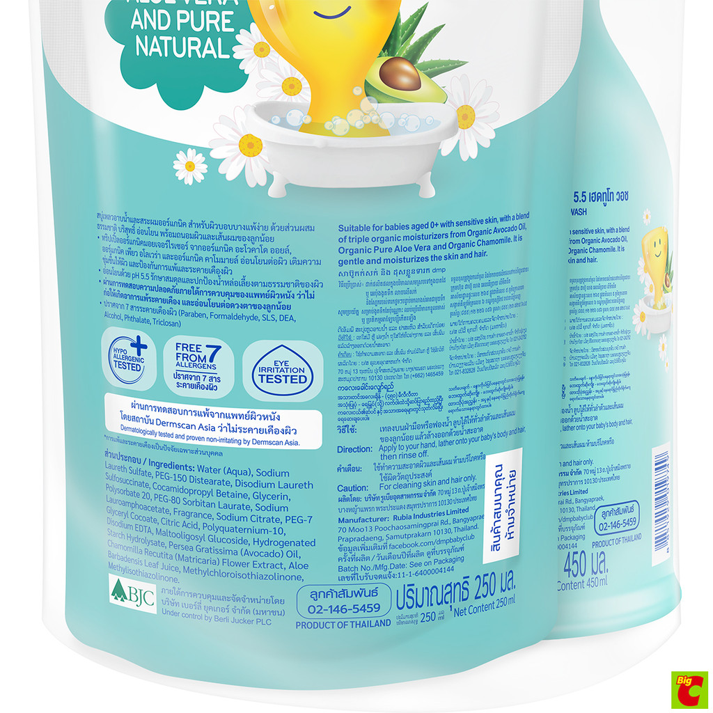 ดีเอ็มพี สบู่อาบน้ำและสระผมออร์แกนิค สูตรอโลเวร่า แอนด์ เพียว แนทเชอรัล 450 มล.