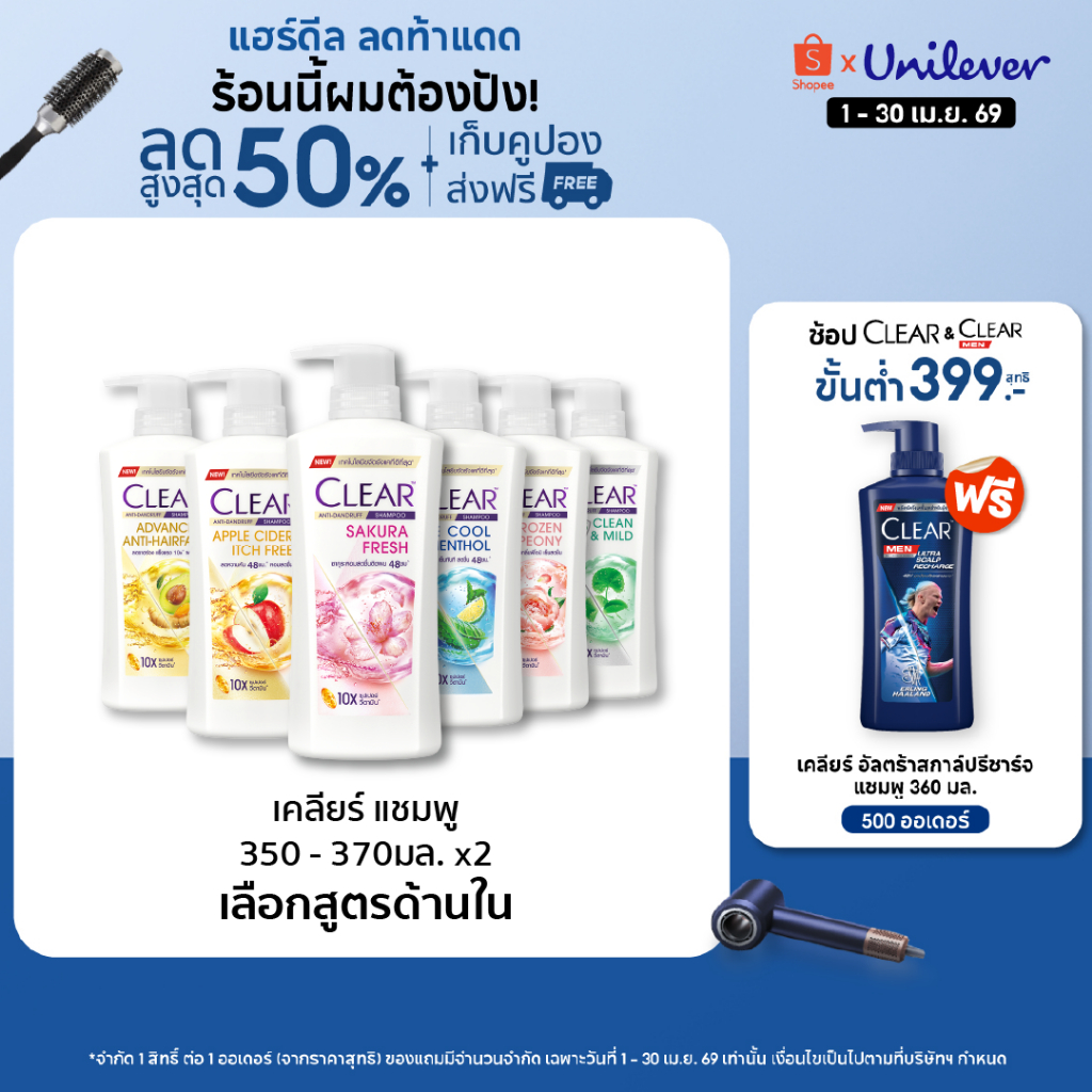 เคลียร์ แชมพู ขจัดรังแค 350-370 มล. x2 (เลือกสูตรข้างใน)