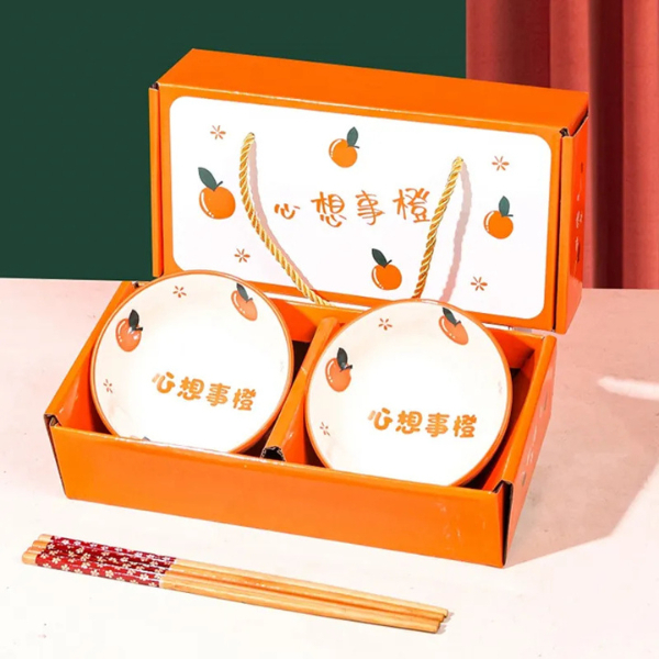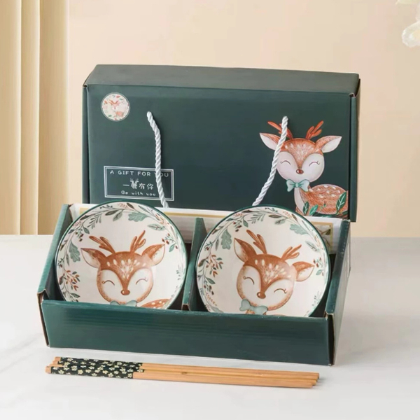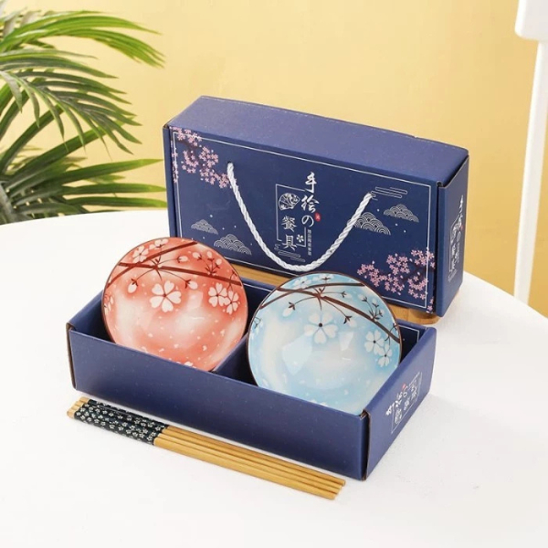 🍇anastasia_66.shop🍇 ชุดถ้วยเซรามิค พร้อมเซตตะเกียบ ของขวัญ ชามเซรามิค 2ใบ เป็นกล่องเซตสวยงาม พร้อมส่ง