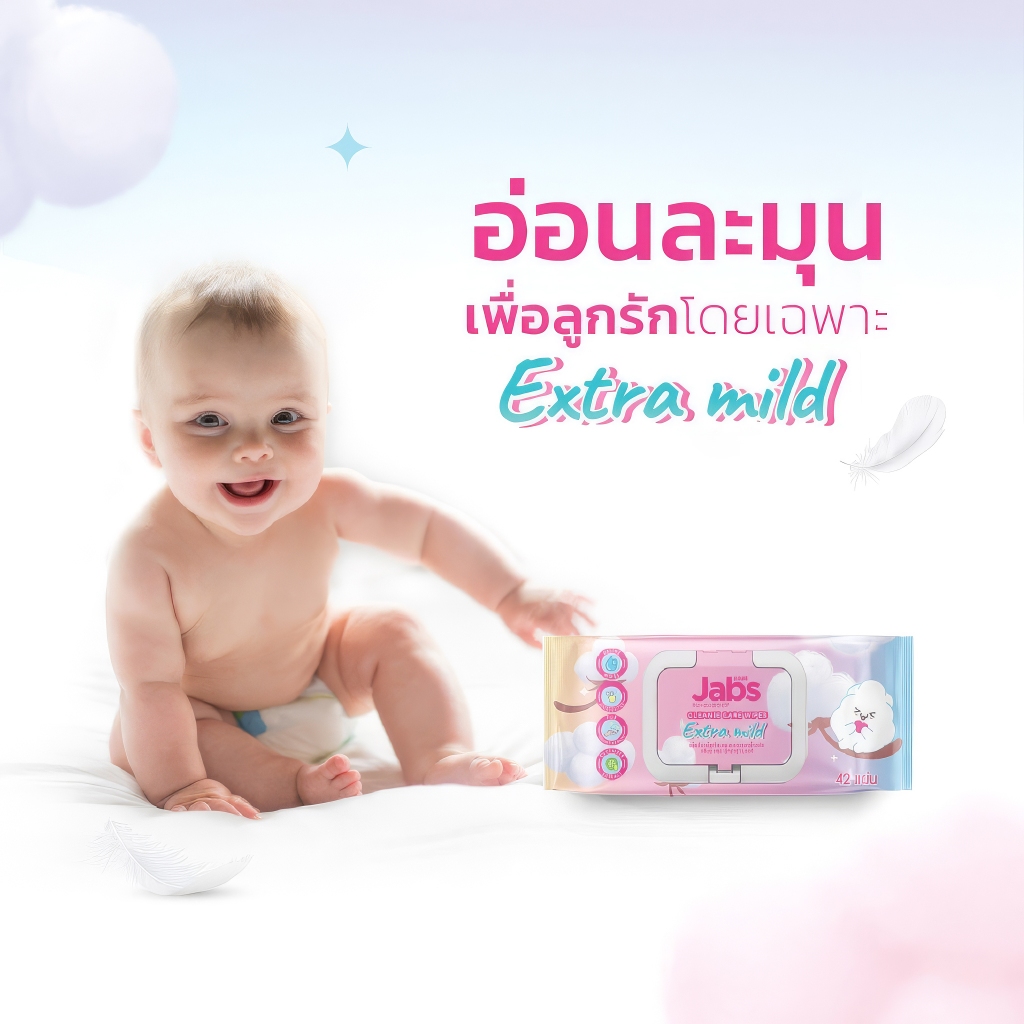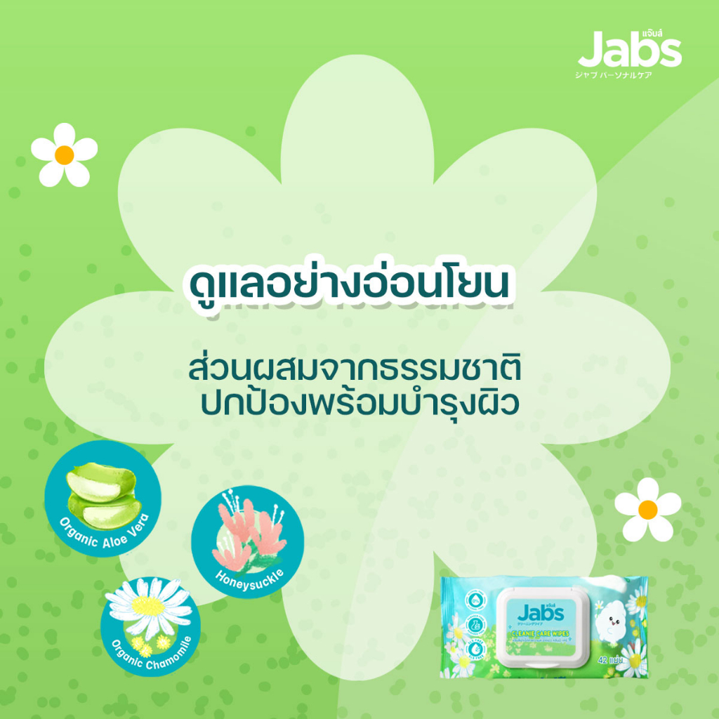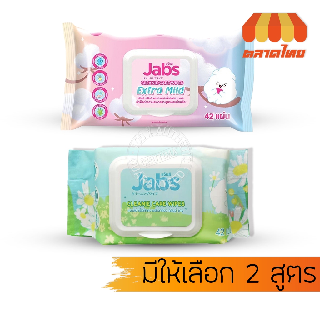 แจ๊บส์ คลีนนี่ แคร์ ทิชชู่เปียก ทำความสะอาดผิว อเนกประสงค์ 42 แผ่น Jabs Cleanie Care Wipes 42 Sheets