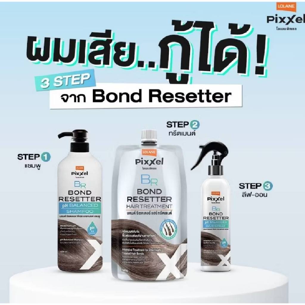 (SET) LOLANE PIXXEL BOND RESETTER HAIR โลแลน พิกเซล บอนด์ รีเซตเตอร์ แฮร์ #ทรีทเม้นท์เชื่อมแกนผมสูตรเข้มข้น