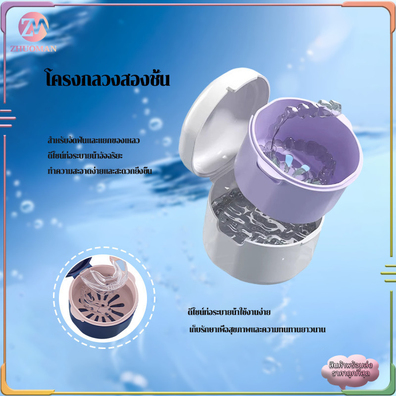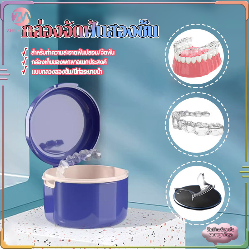 กล่องใส่รีเทนเนอร์ กล่องจัดฟันสองชั้น กล่องรีเทนเนอร์ กล่องฟันปลอม มียางซีลกันน้ำป้องกันการรั่วซึม วัสดุคุณภาพ