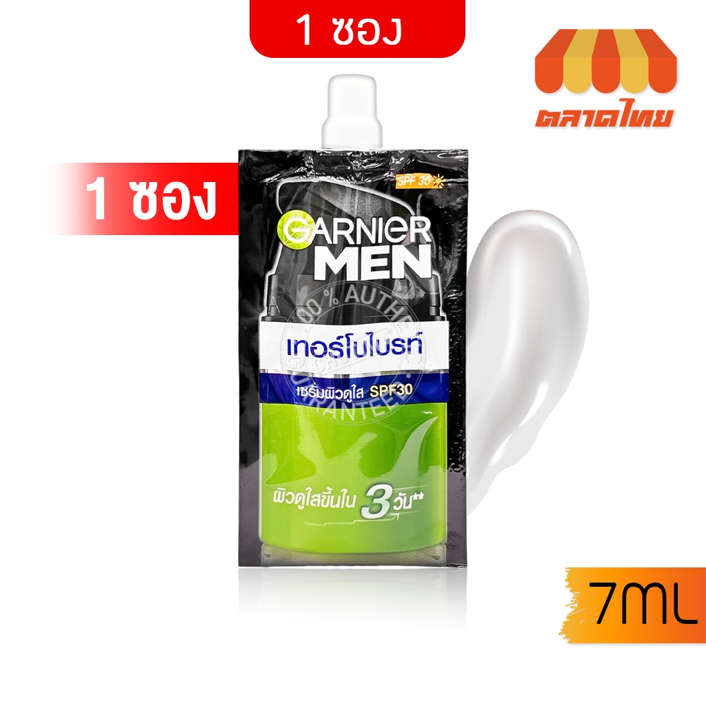 (1 ซอง) การ์นิเย่ เมน เซรั่ม ครีมซอง Garnier Men TurboBright Super Serum / Brightening SPF50+ / Oil Control Serum 7 ml.