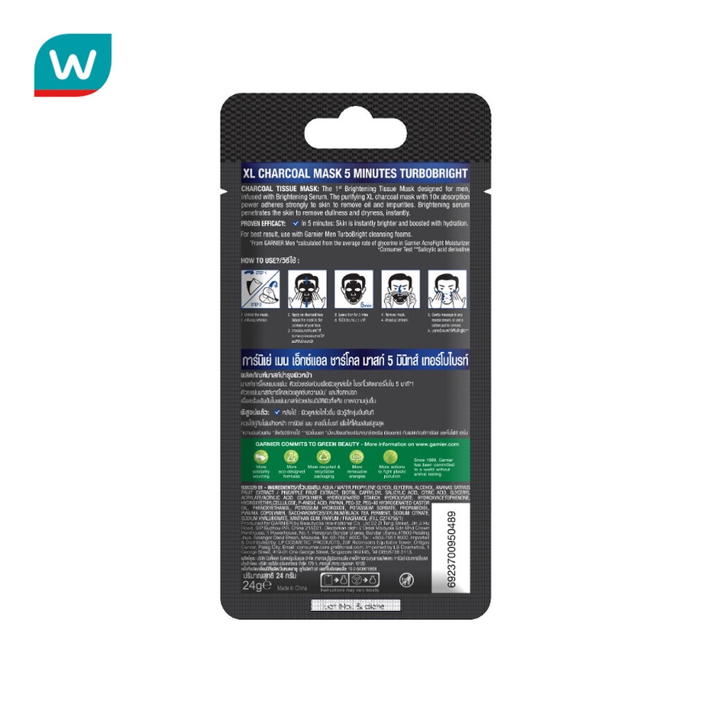 Garnier การ์นิเย่ เมน เอ็กซ์แอล ชาร์โคล มาสก์ 5 มินิทส์ เทอร์โบไบรท์ 1 แผ่น