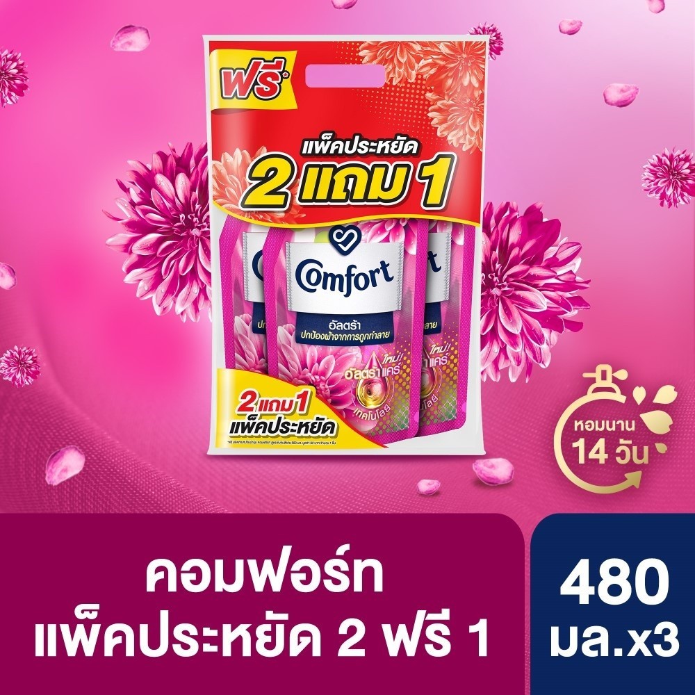 [2 แถม 1] Comfort Ultra คอมฟอร์ท น้ำยาปรับผ้านุ่มสูตรเข้มข้น 475ml-480ml หอมติดผ้ายาวนาน แพ็ค 3