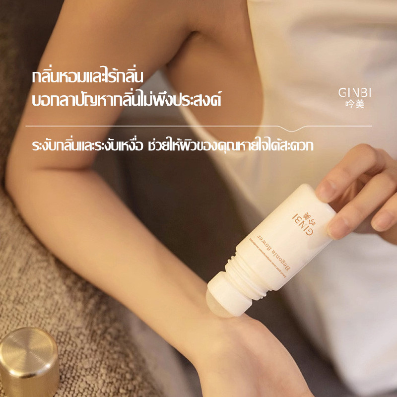 โรลออนระงับกลิ่นกาย GINBI ระงับเหงื่อดีเยี่ยม กลิ่นหอมสดชื่นตลอดวัน ซึมซาบไว ขนาด 50ml. / มี 3 สูตร-g21