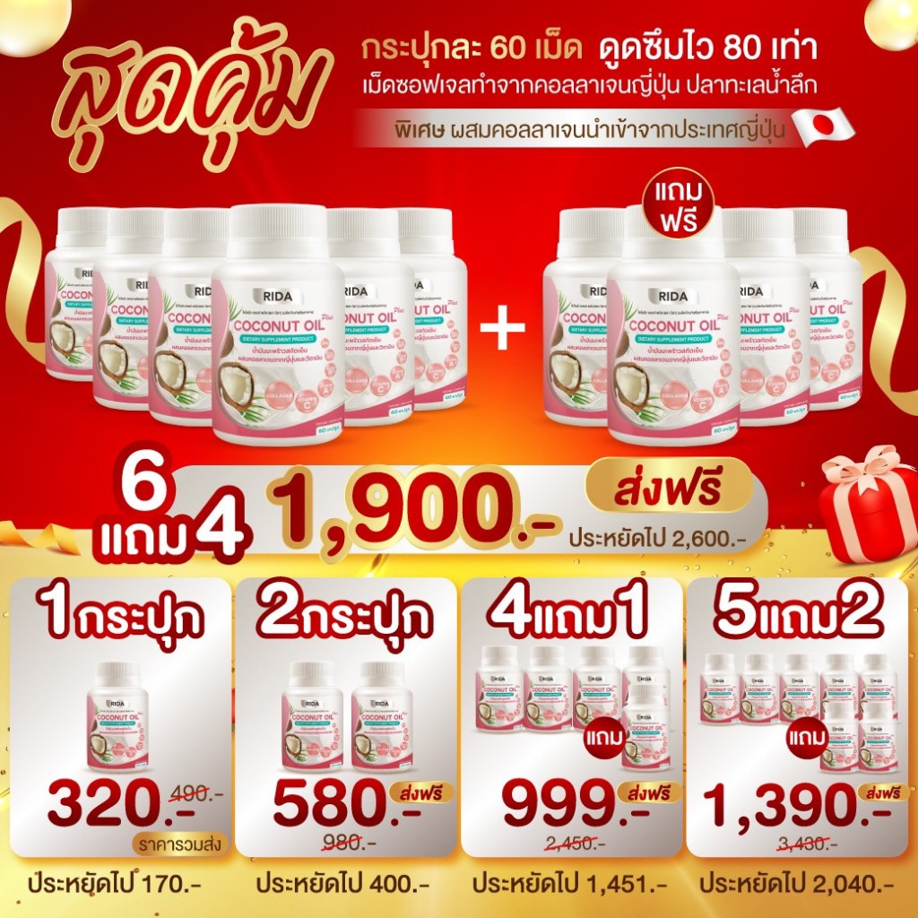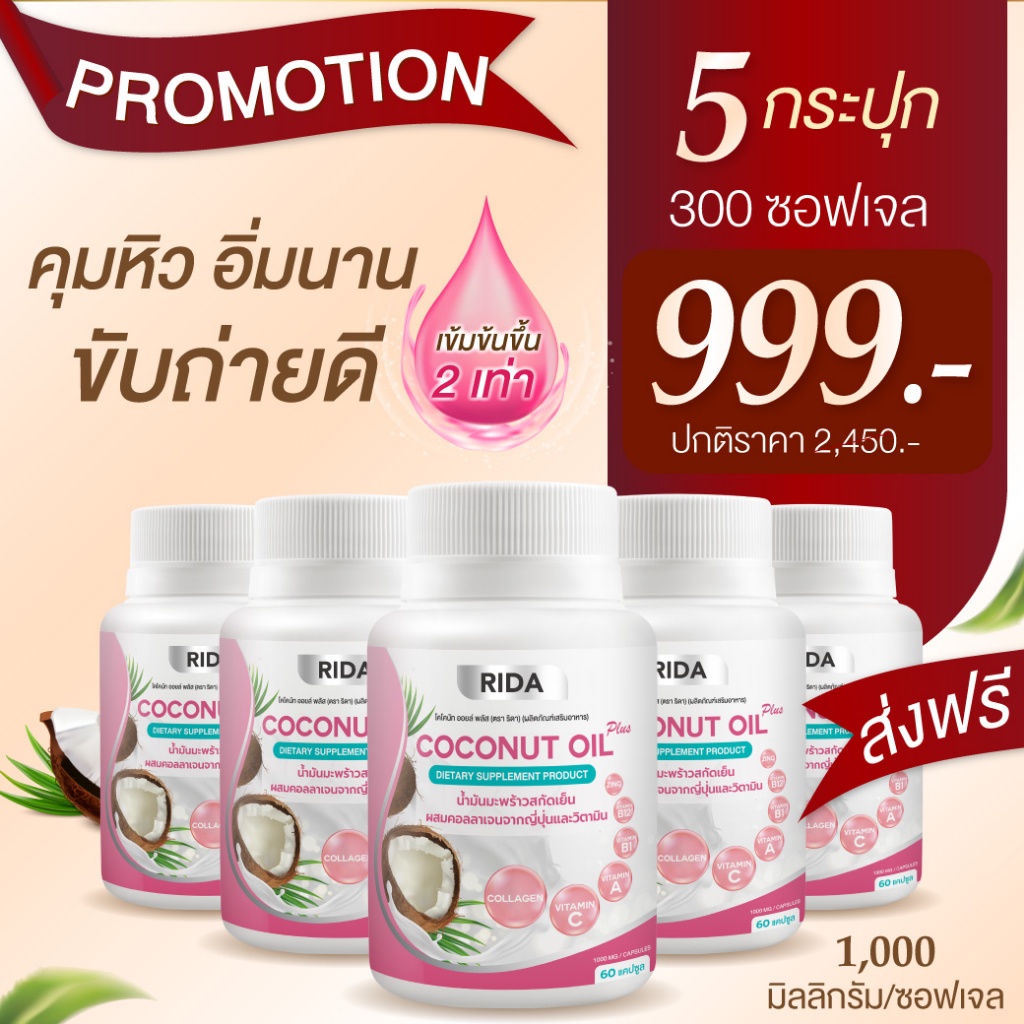 ลด150🔥 ริด้า RIDA Coconut oil โคโค่พลัส น้ำมันมะพร้าว ผสมคอลลาเจนและวิตามิน | 60 เเคปซูล