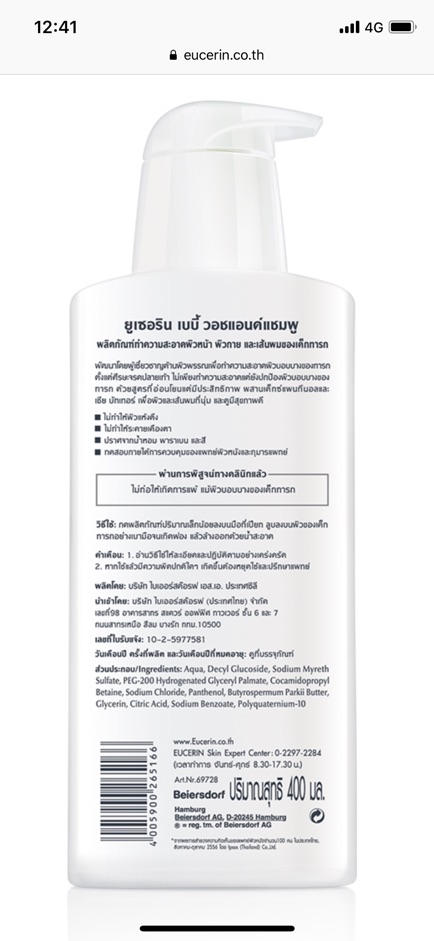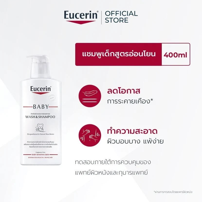 ของแท้💯 ฉลากไทย มีอย. มีซีล Eucerin Baby Wash and Shampoo 400 ml ยูเซอรีน เบบี้ วอช & แชมพู เด็ก ขวดปั้ม