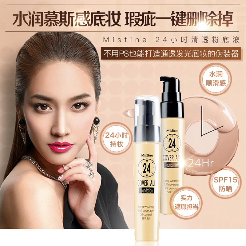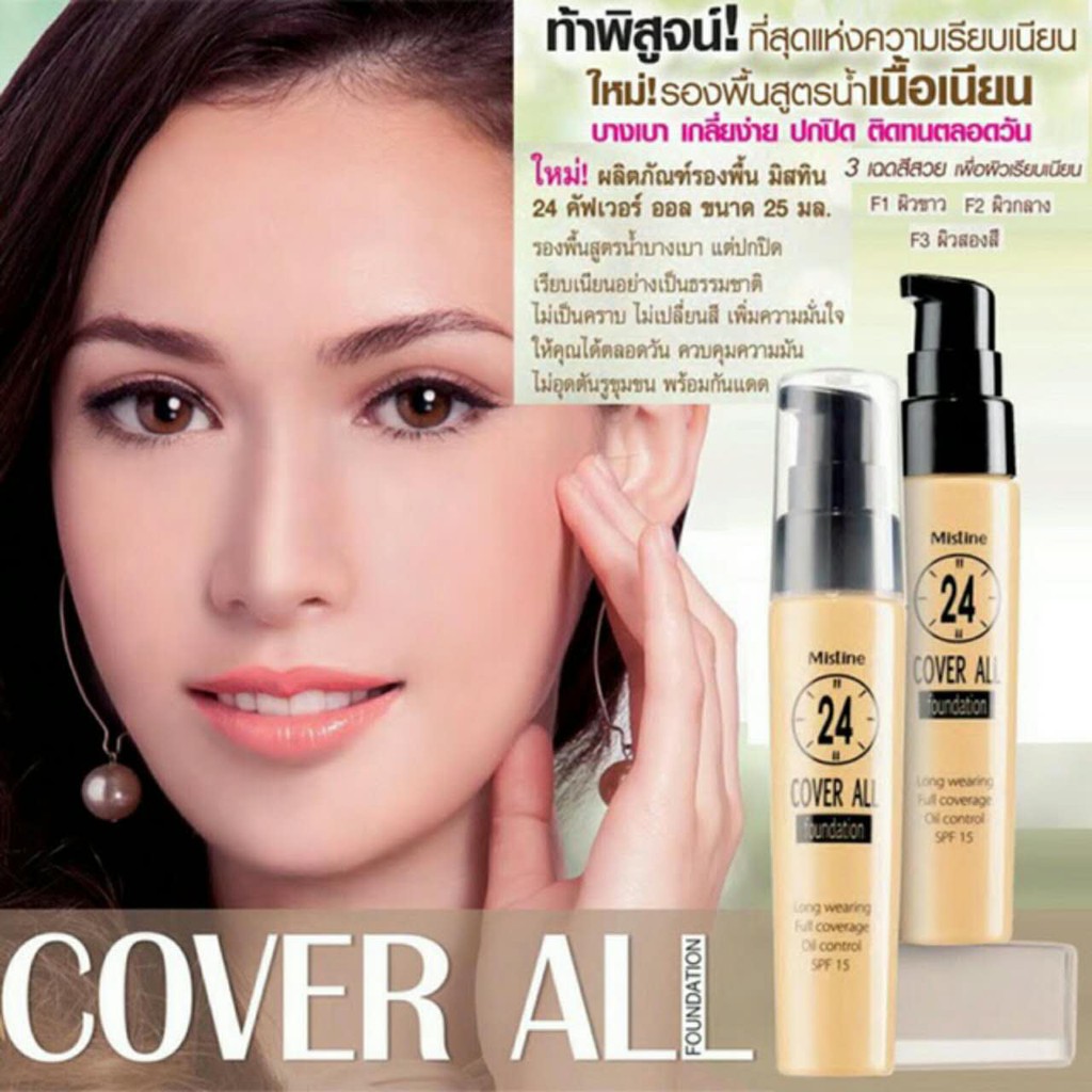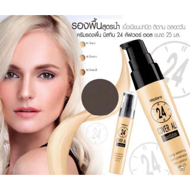 รองพื้น มิสทีน คุมมัน บางเบา ติดทน 25ml Mistine 24 Cover All Foundation new package