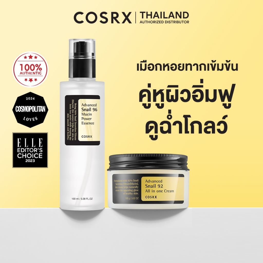 COSRX Advance Snail 92 All in one Cream 100ml +Snail 96 Mucin Power Essence 100ml ให้ความชุ่มชื้น ซึมไว ไม่เหนอะผิว
