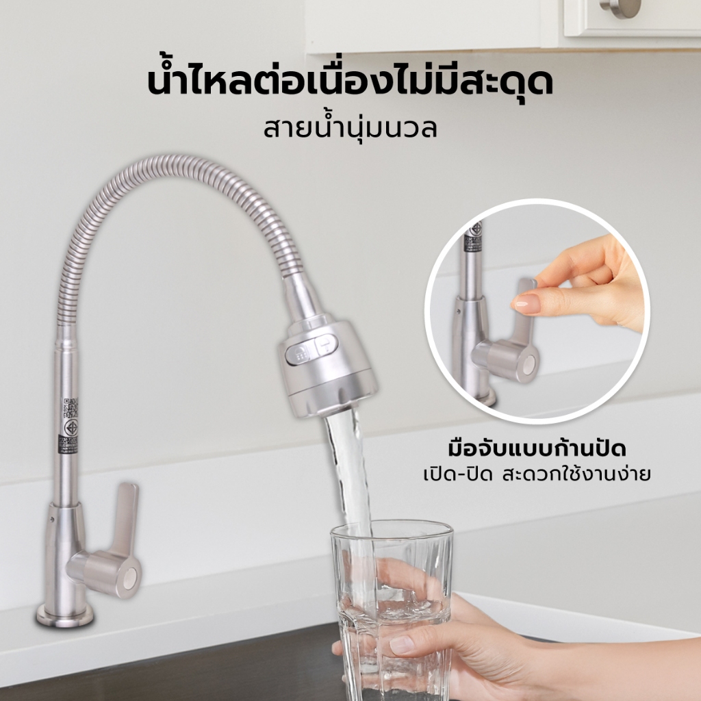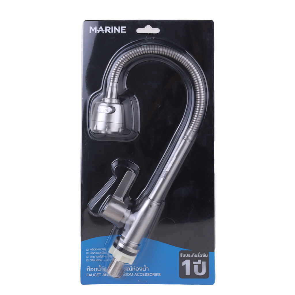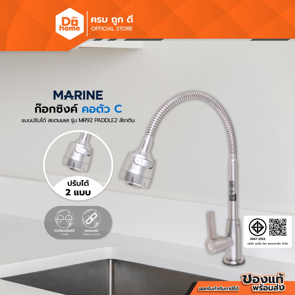 MARINE ก๊อกอ่างซิงค์ คอ C แบบปรับได้ สแตนเลส รุ่น MR92 PADDLE2 สีซาติน |ZWF|