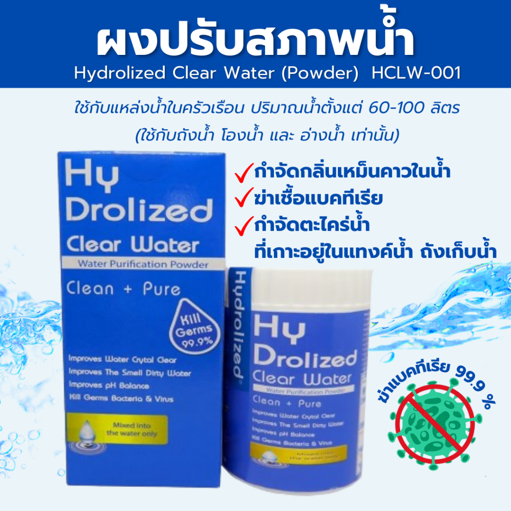 ผงปรับสภาพน้ำ เคลียร์วอเตอร์ ผงผสมน้ำอาบ เกรดA นำเข้าจากอเ มริกา กำจัดลิ่นคาวน้ำ ฆ่าเชื้อโรคในน้ำ