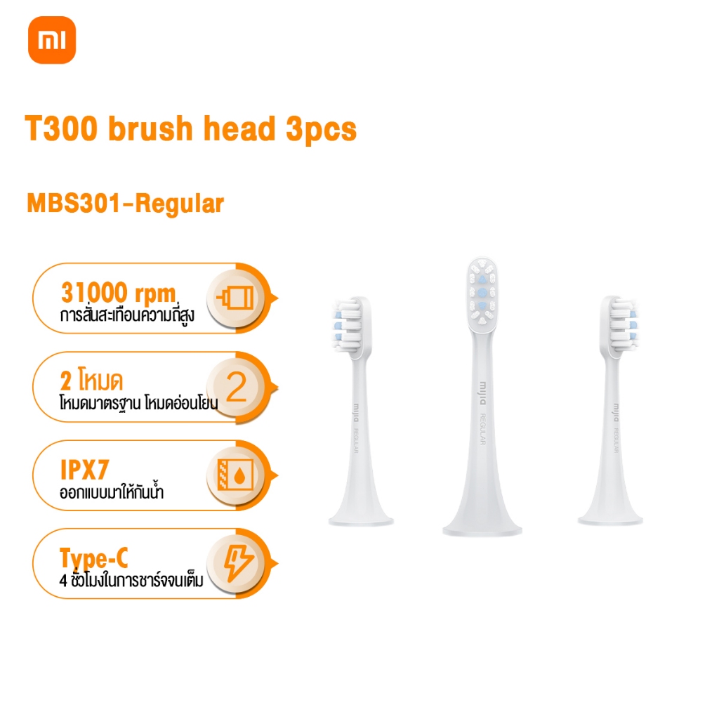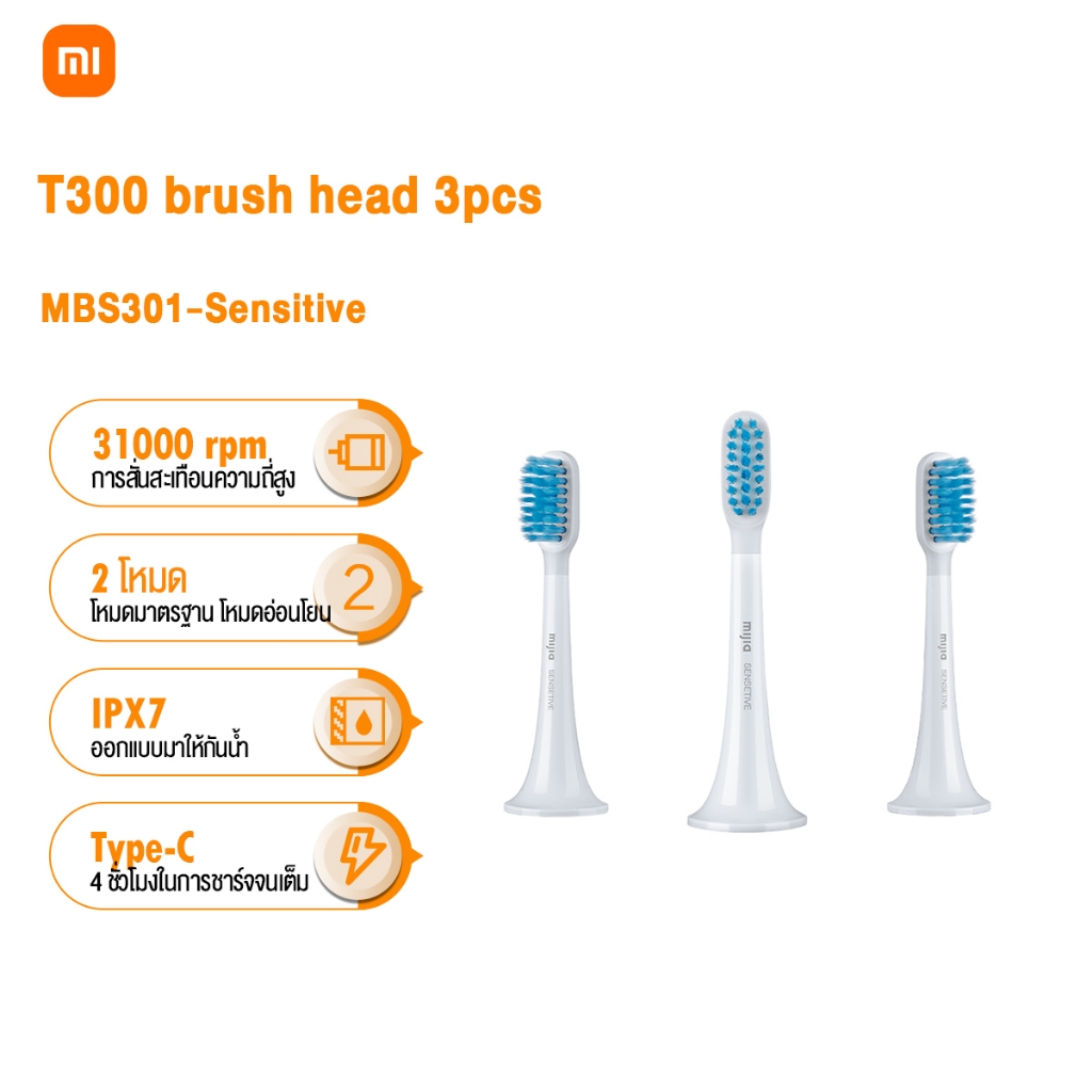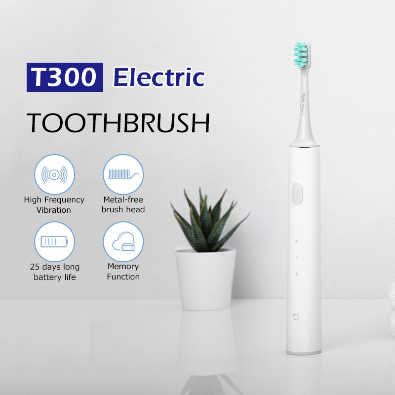 Xiaomi แปรงสีฟันไฟฟ้า Mijia T300 Sonic Electric Toothbrush แปรงสีฟันกันน้ำ IPX7 หัวแปรงสีฟัน 2 โหมด ดูแลช่องปาก