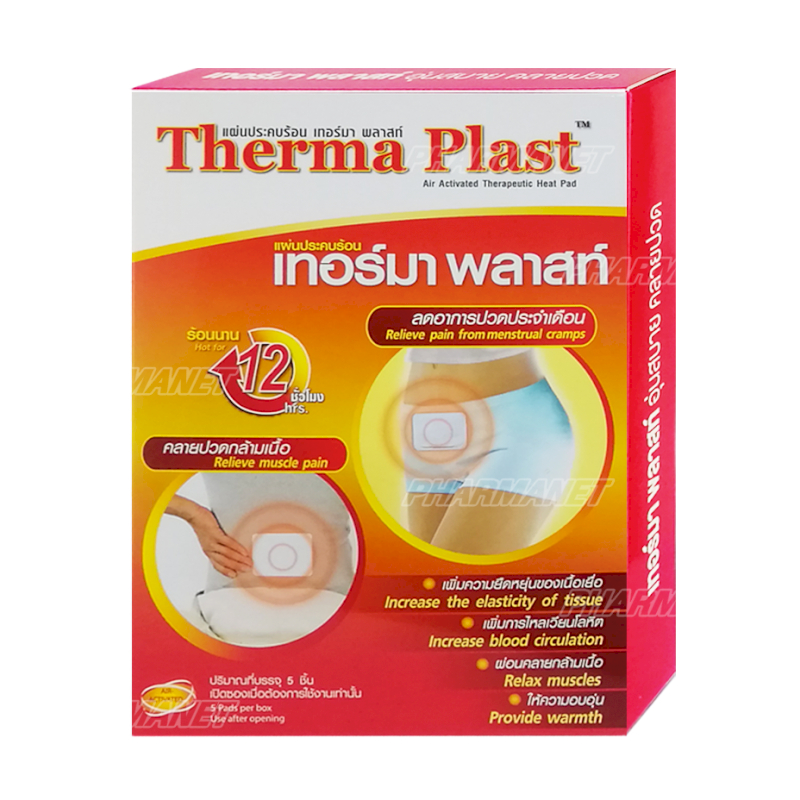 Therma Plast Heat Pad แผ่นประคบร้อน เทอร์มา พลาสท์ ขนาด 13x9.5 cm. ปวดกล้ามเนื้อ ปวดประจำเดือน