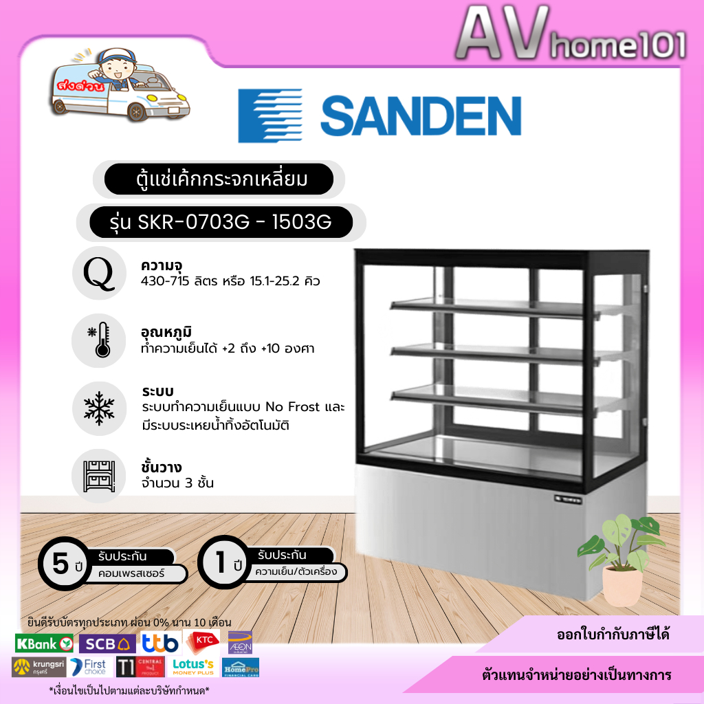 ตู้แช่เค้กตั้งพื้น กระจกเหลี่ยม SANDEN รุ่น SKR-0703SG - 1503SG (SG)