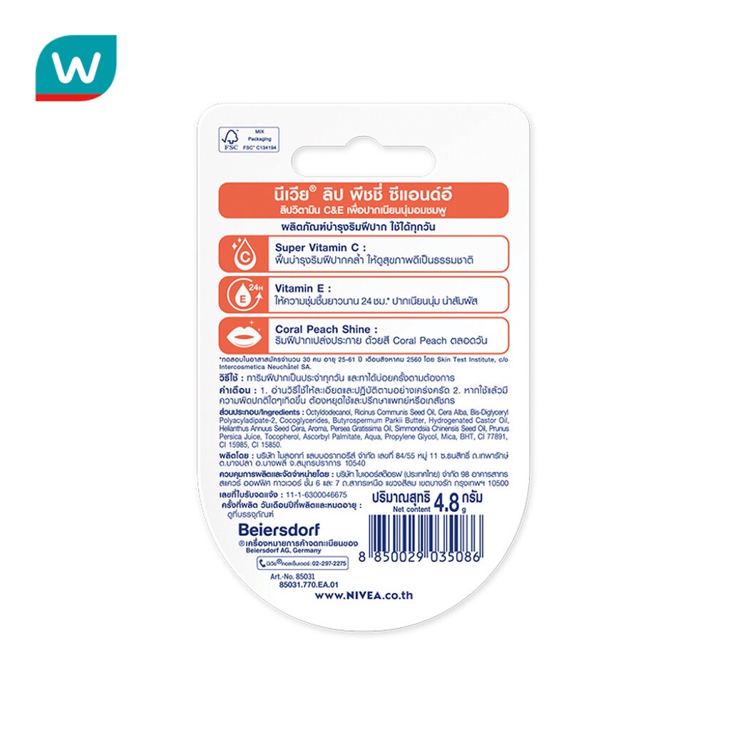 Nivea นีเวีย ลิป พีชชี่ ซีแอนด์อี 4.8 กรัม