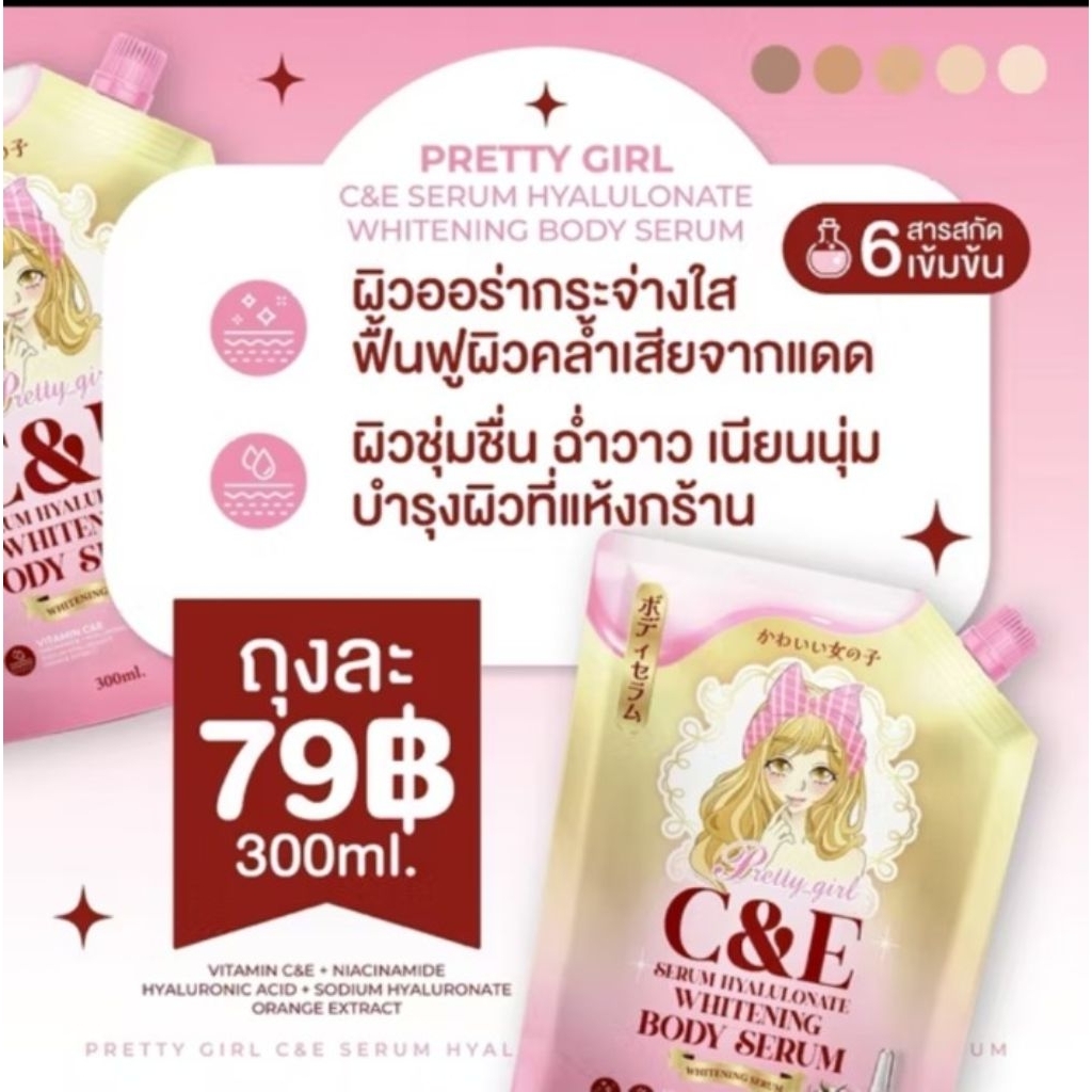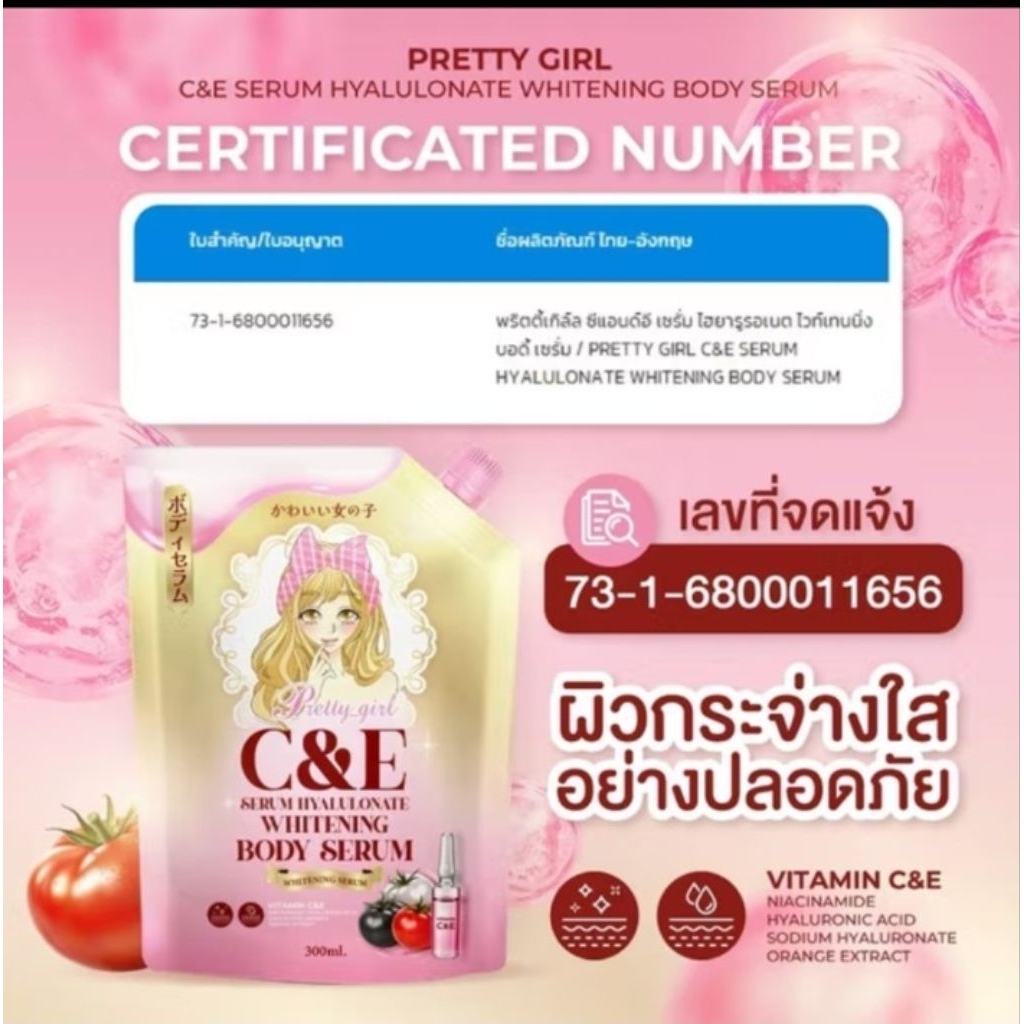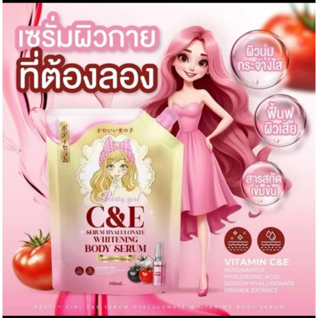 เซรั่มบำรุงผิวกาย Pretty Girl C&E BODY HYA WHITENING GOLD SERUM